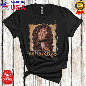 Mom Life Cute Cool Black History Month African American Afro Girl Women Drinking Coffee T-Shirt