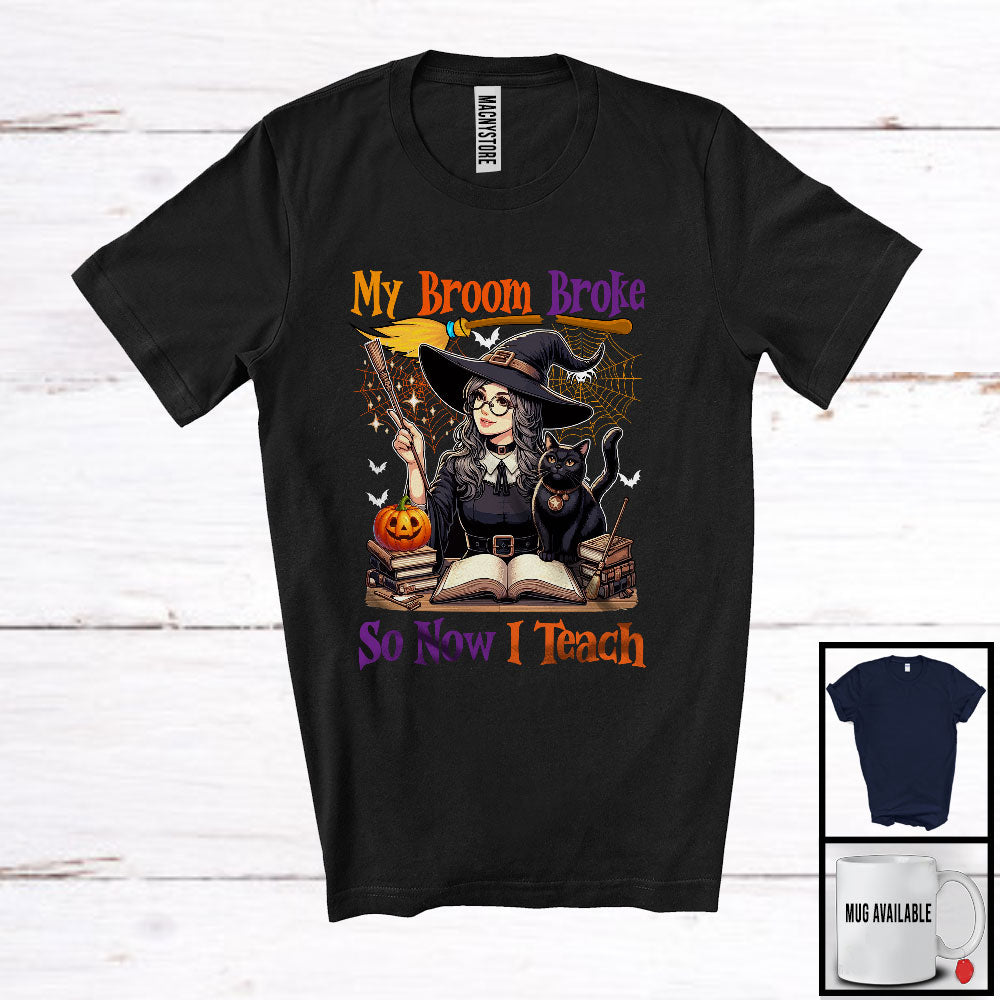 • My Broom Broke So Now I Teach, Humorous Halloween Teacher Witch Teaching, Family Group T-Shirt. This cotton t-shirt is a durable staple product with a classic fit. One of the most popular items, it has a relaxed style made for everyday and casual wear.