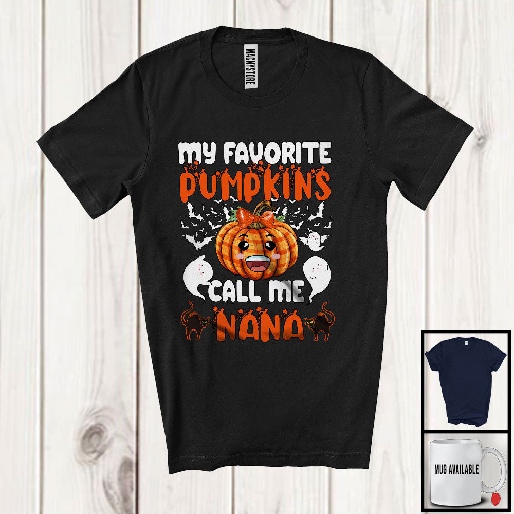 My Favorite Pumpkins Call Me Nana; Cheerful Halloween Plaid Pumpkin; Family Group T-Shirt. This cotton t-shirt is a durable staple product with a classic fit. One of the most popular items, it has a relaxed style made for everyday and casual wear.