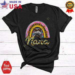Nana Cool Cute Mother's Day Sunflower Rainbow Leopard Bun Hair Woman Face Family T-Shirt