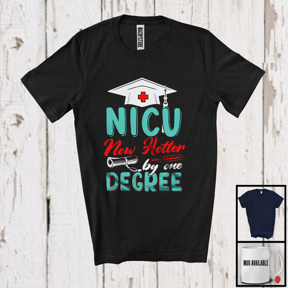 • NICU Now Hotter By One Degree, Proud Graduation Nurse Nursing Lover, Doctor Group T-Shirt. This cotton t-shirt is a durable staple product with a classic fit. One of the most popular items, it has a relaxed style made for everyday and casual wear.