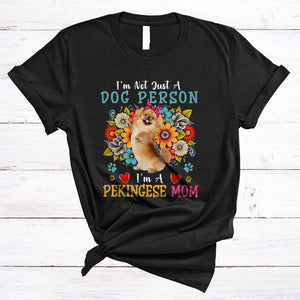 The Not Just A Dog Person I'm A Pekingese Mom, Floral Mother's Day Flowers, Mommy Family T-Shirt destined to impress, and priced at only $15.95, for a limited time.