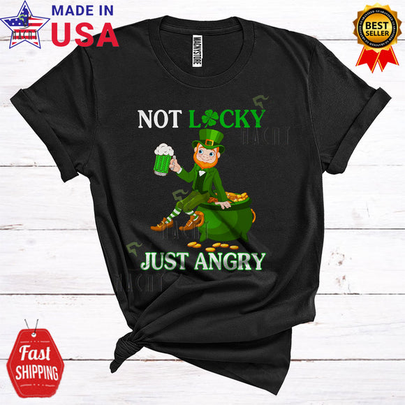 Not Lucky Just Angry Funny Cool St. Patrick's Day Pot Of Gold Coins Leprechaun Drinking Beer Drunk T-Shirt