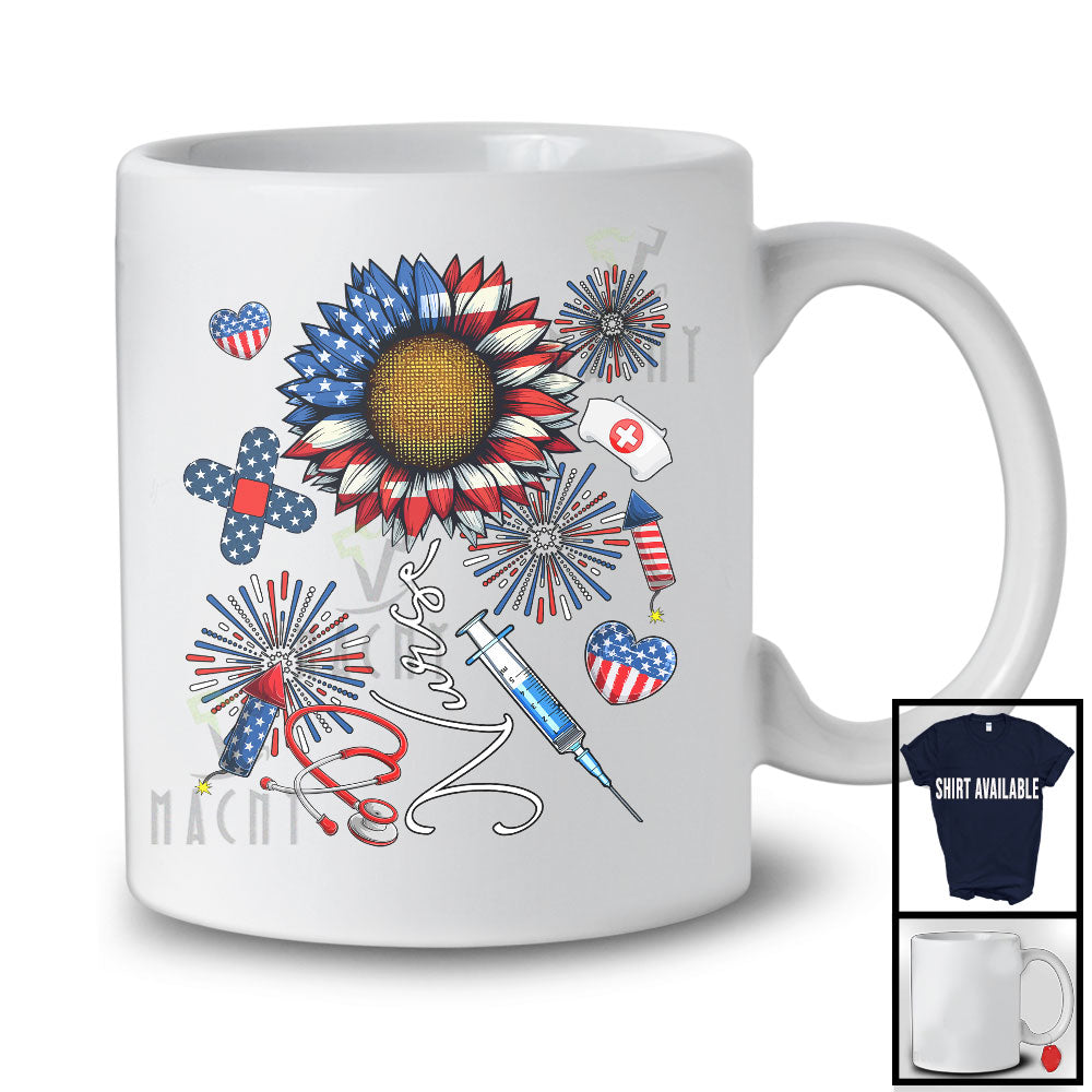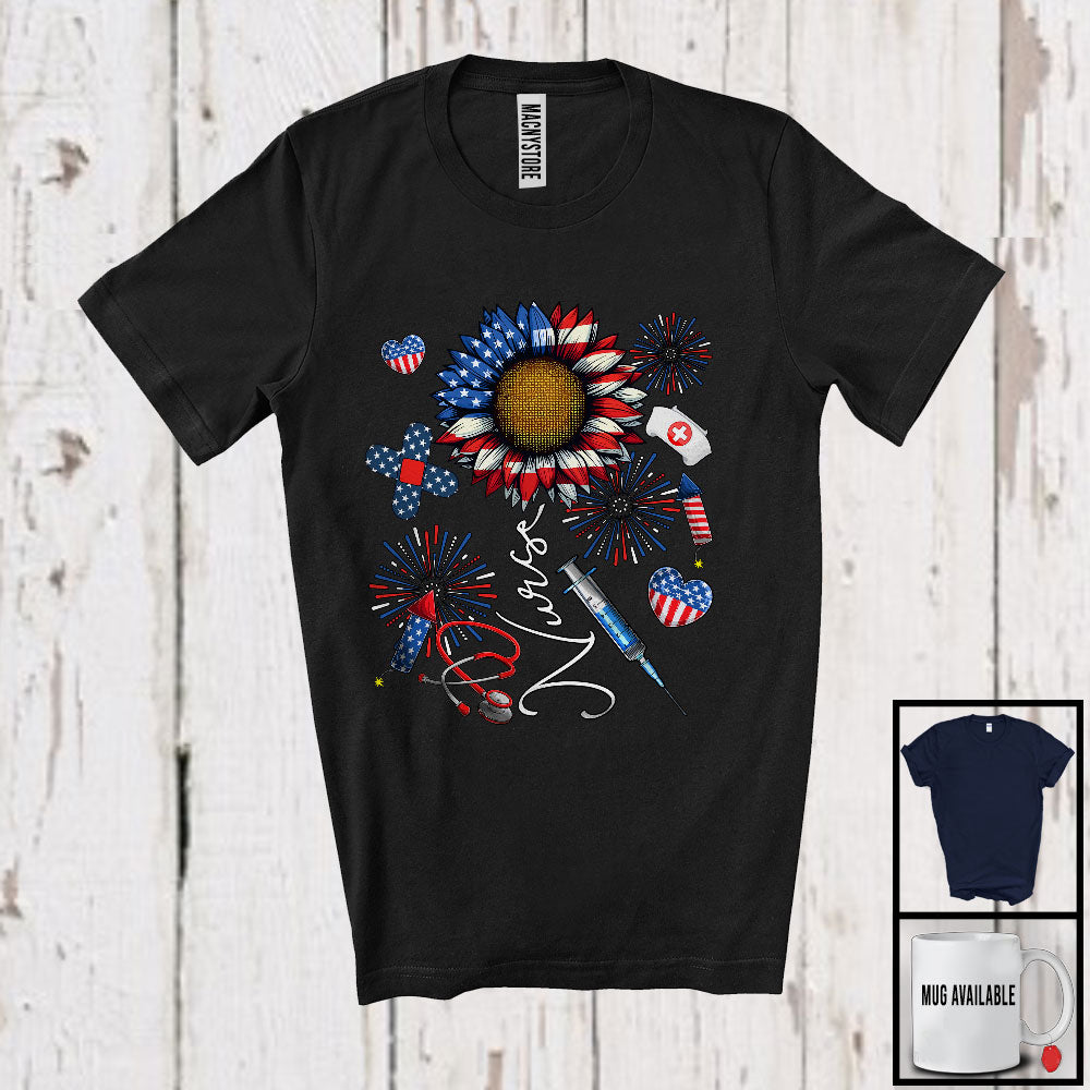 Nurse, Joyful 4th Of July American Flag Sunflower Nurse Tools, Matching Patriotic Nurse Group T-Shirt