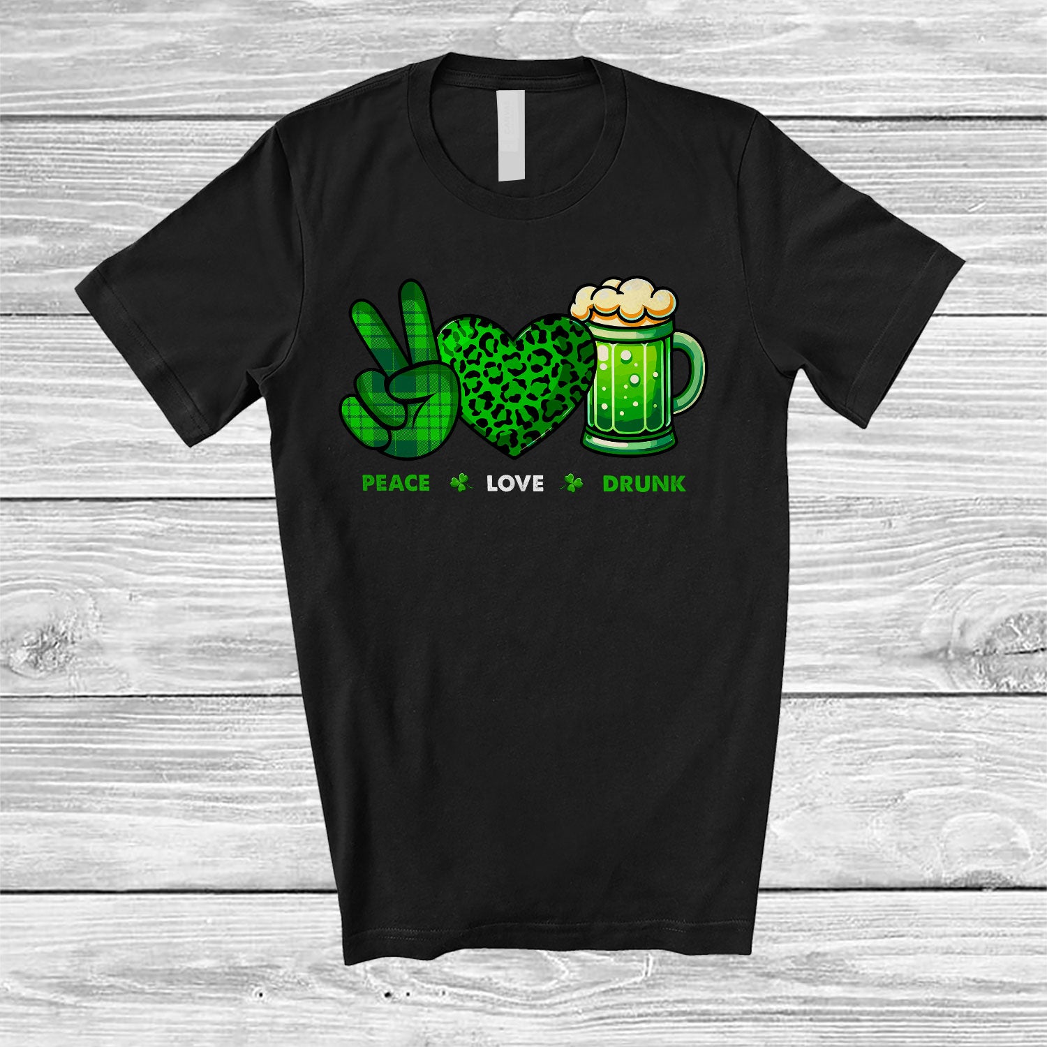 Peace Love Drunk; Amusing St. Patrick's Day Green Peace Hand Sign Heart; Beer Drinking T-Shirt. This cotton t-shirt is a durable staple product with a classic fit. One of the most popular items, it has a relaxed style made for everyday and casual wear.