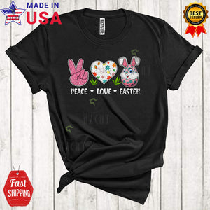 Peace Love Easter Cool Happy Easter Day Peace Hand Sign Floral Heart Bunny Eggs Hunt T-Shirt