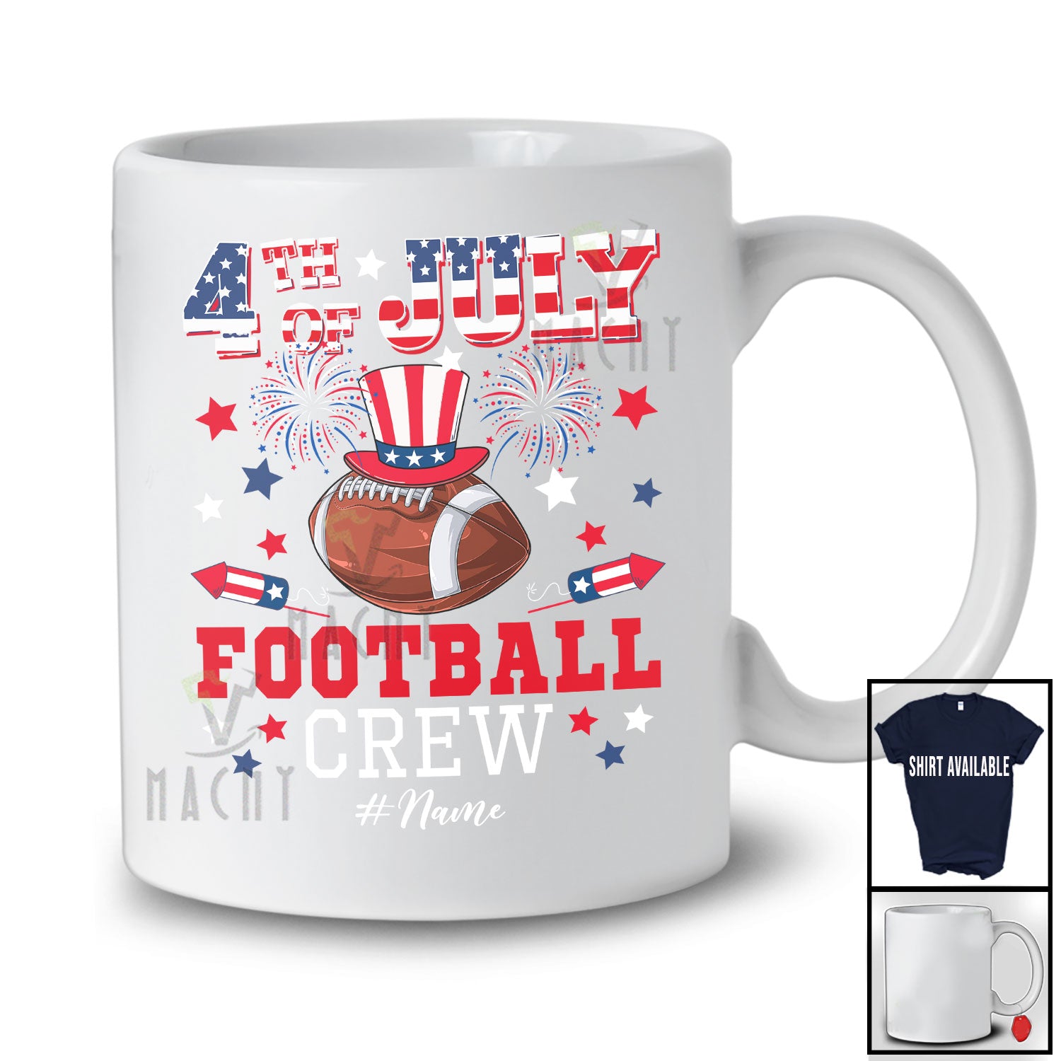 Personalized 4th of July Football Crew; Joyful Custom Name Patriotic Football Equipment T-Shirt. This cotton t-shirt is a durable staple product with a classic fit. One of the most popular items, it has a relaxed style made for everyday and casual wear.