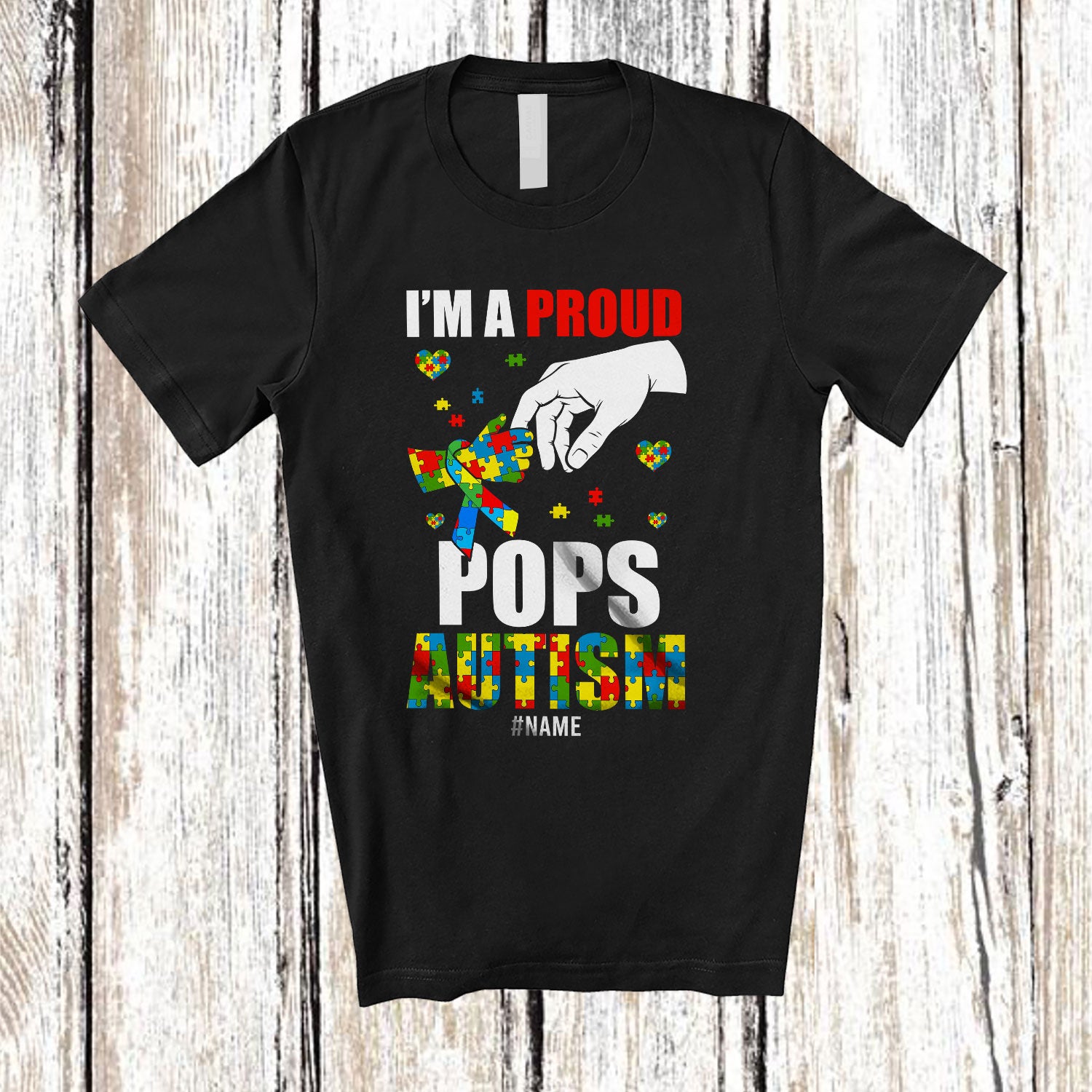 • Personalized A Proud Pops Autism; Lovely Father's Day Puzzle Heart; Custom Name Boys Family T-Shirt. This cotton t-shirt is a durable staple product with a classic fit. One of the most popular items, it has a relaxed style made for everyday and casual wear.