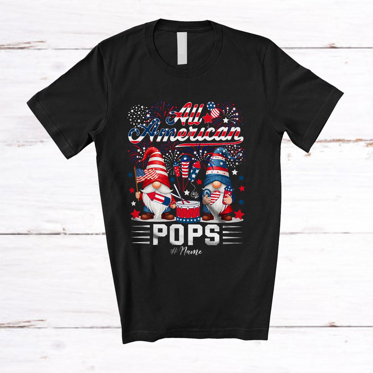 Personalized All American Pops; Proud 4th Of July US Flag Fireworks; Custom Name Patriotic T-Shirt