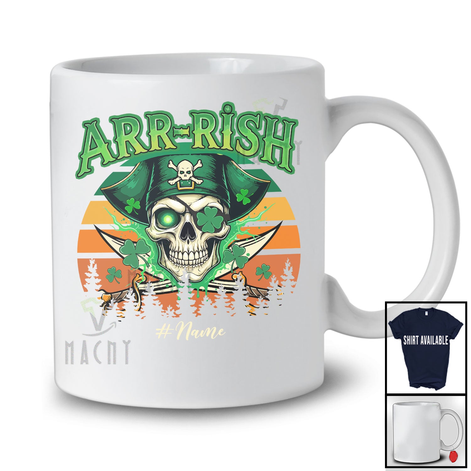 new MacnyStore - Personalized Arr-rish; Happy St. Patrick's Day Leprechaun Pirate Skull; Custom Name Irish Retro T-Shirt – Macnystore