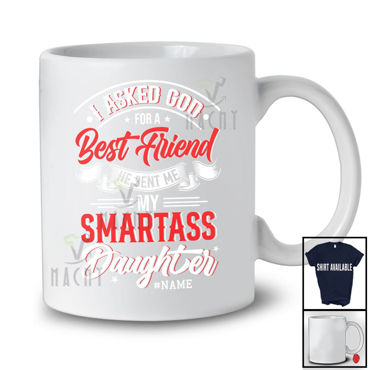 • Personalized Asked God For A Best Friend Smartass Daughter; Joyful Father's Day Family T-Shirt. This cotton t-shirt is a durable staple product with a classic fit. One of the most popular items, it has a relaxed style made for everyday and casual wear.