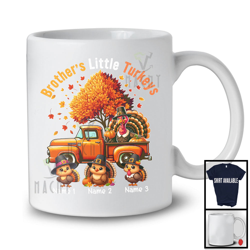 This Personalized Brother's Little Turkeys; Lovely Thanksgiving Fall Tree Pickup Truck; Family T-Shirt is great idea gift for your family, friends in this birthday, christmas, mother's day, father's day, patrick's day or any holiday.