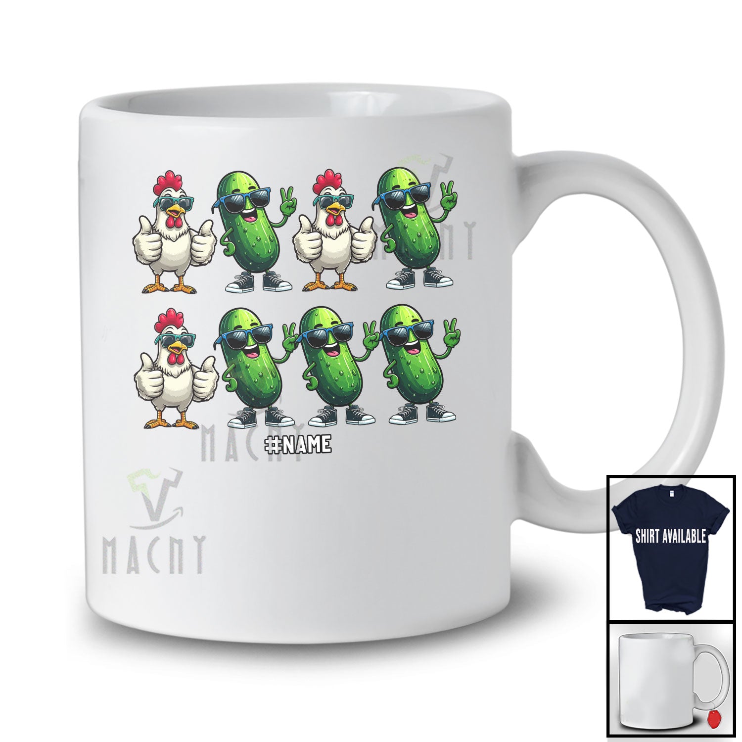 Personalized Chicken Pickle Sunglasses; Humorous Summer Birthday Custom Name Vegan Farmer T-Shirt. This cotton t-shirt is a durable staple product with a classic fit. One of the most popular items, it has a relaxed style made for everyday and casual wear.
