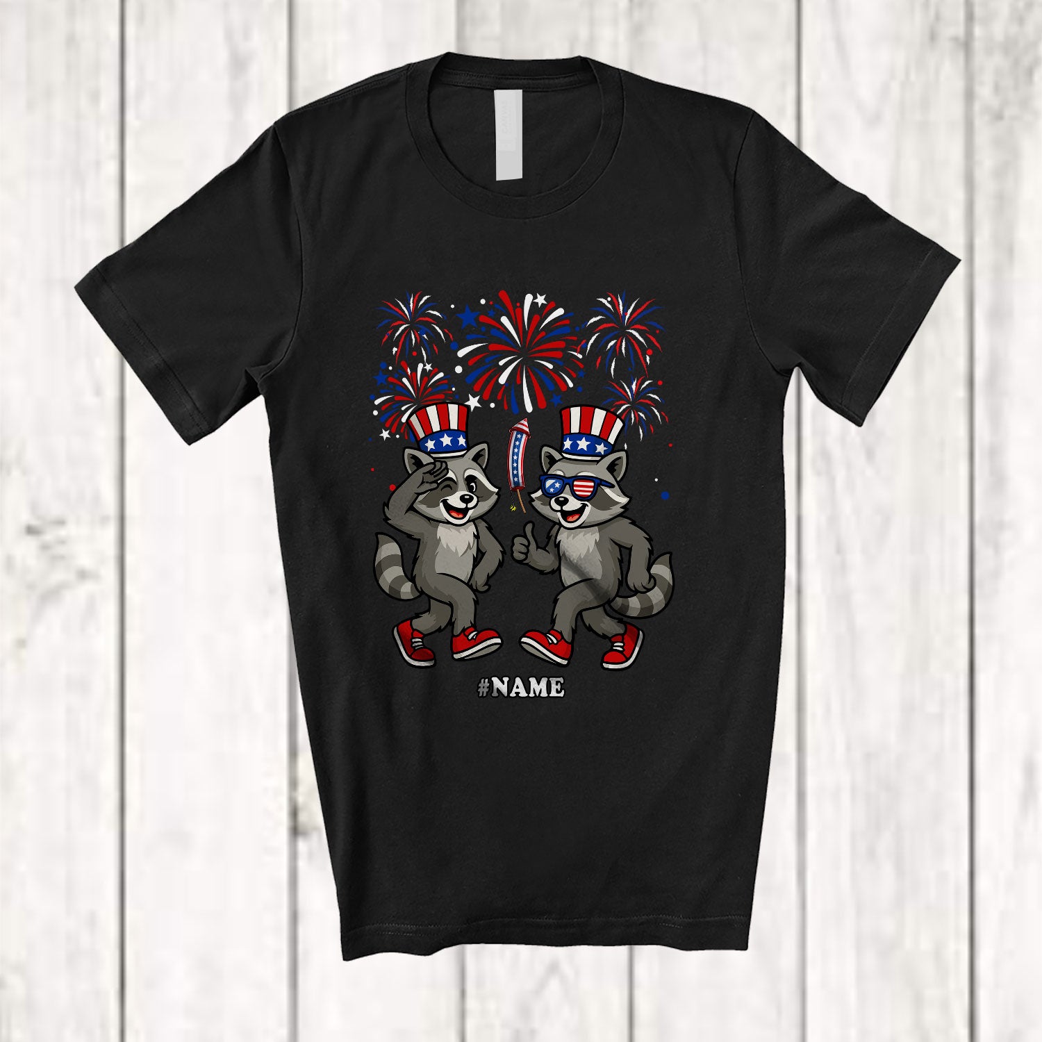 • Personalized Couple Raccoon Dancing; Joyful 4th Of July Custom Name Patriotic Raccoon Lover T-Shirt. This cotton t-shirt is a durable staple product with a classic fit. One of the most popular items, it has a relaxed style made for everyday and casual wear.