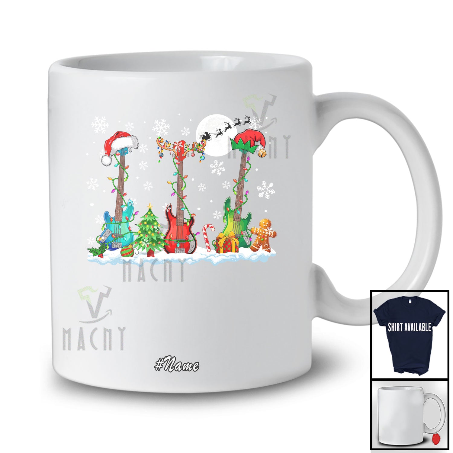 • Personalized Custom Name 3 Santa Elf Guitar Bass; Amazing Christmas Musical Instruments T-Shirt. This cotton t-shirt is a durable staple product with a classic fit. One of the most popular items, it has a relaxed style made for everyday and casual wear.