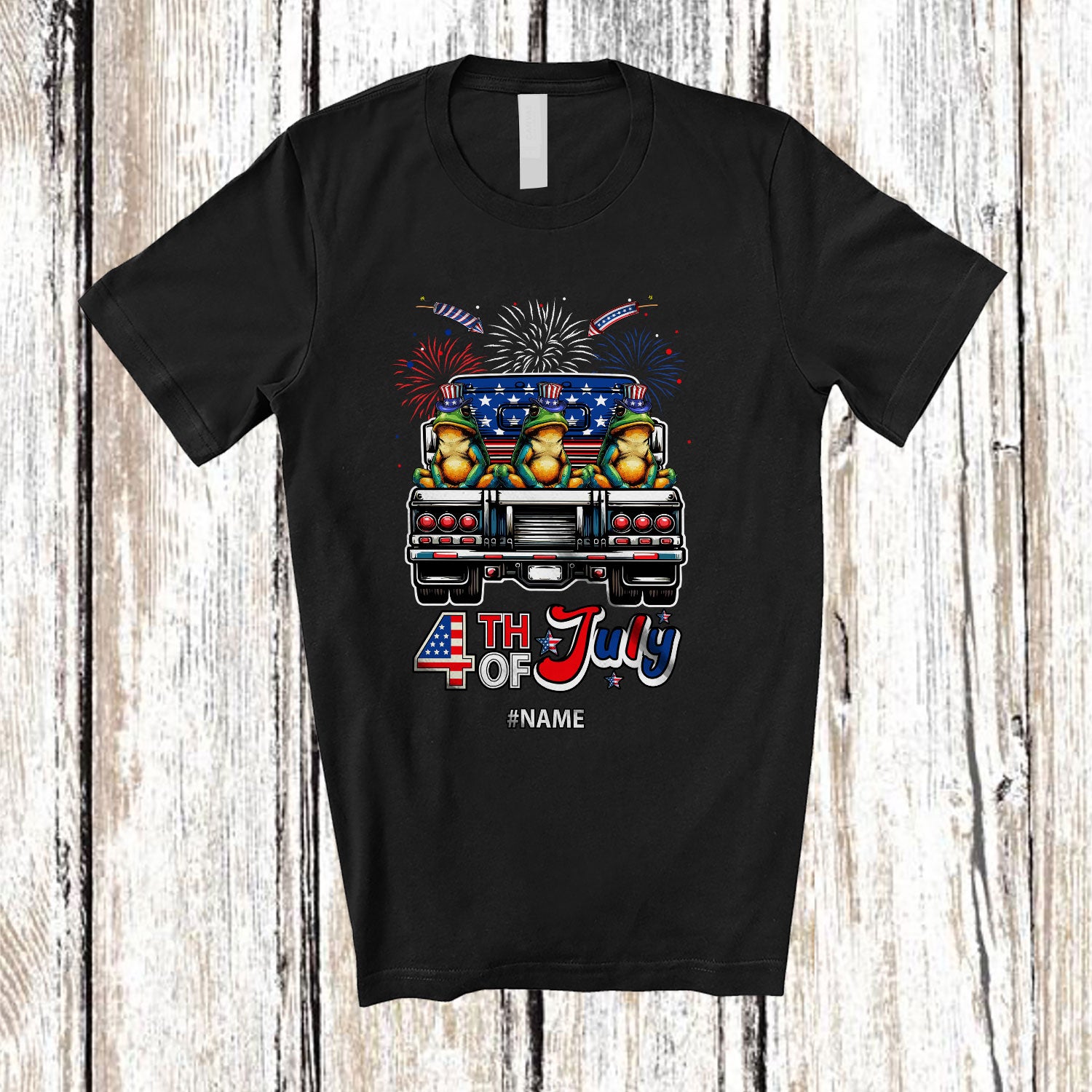 Personalized Custom Name 4th of July; Lovely Three US Flag Frog On Truck; Patriotic T-Shirt