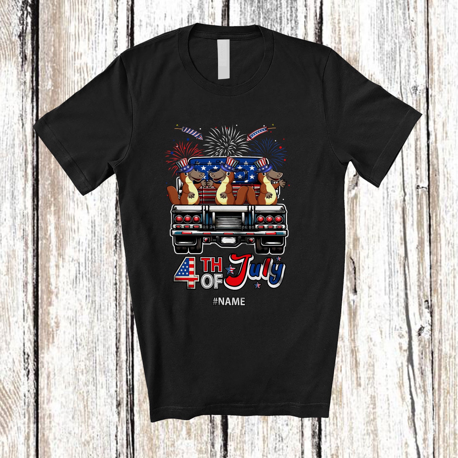 Personalized Custom Name 4th of July; Lovely Three US Flag Platypus On Truck; Patriotic T-Shirt