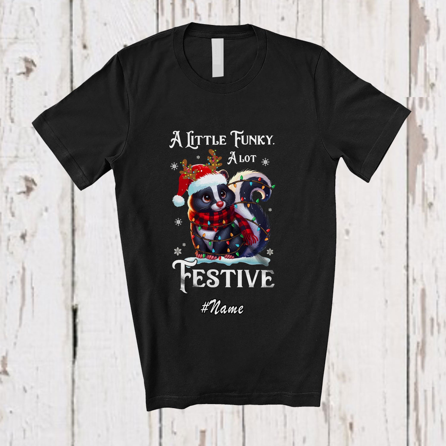 This Personalized Custom Name A Little Funky A Lot Festive; Lovely Christmas Santa Skunk Feral T-Shirt is great idea gift for your family, friends in this birthday, christmas, mother's day, father's day, patrick's day or any holiday.