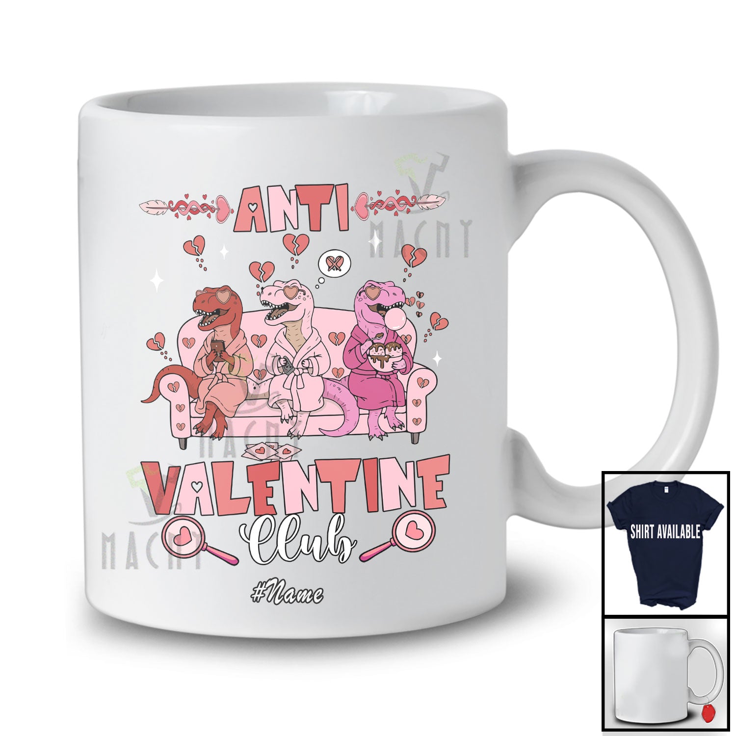 • Every product is unique, just like you. If you're looking for a product that fits the mold of your life, the Personalized Custom Name Anti Valentine Club; Humorous Three Pink T-Rex Dinosaur Lover T-Shirt is for you.