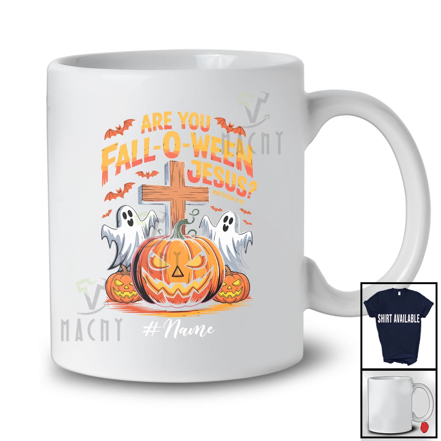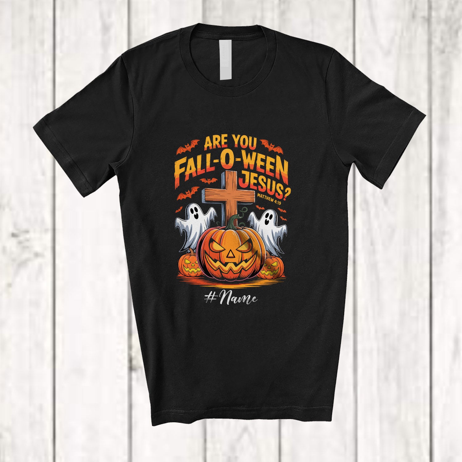 Personalized Custom Name Are You Fall-o-ween Jesus; Scary Halloween Pumpkin Cross; Family T-Shirt. This cotton t-shirt is a durable staple product with a classic fit. One of the most popular items, it has a relaxed style made for everyday and casual wear.