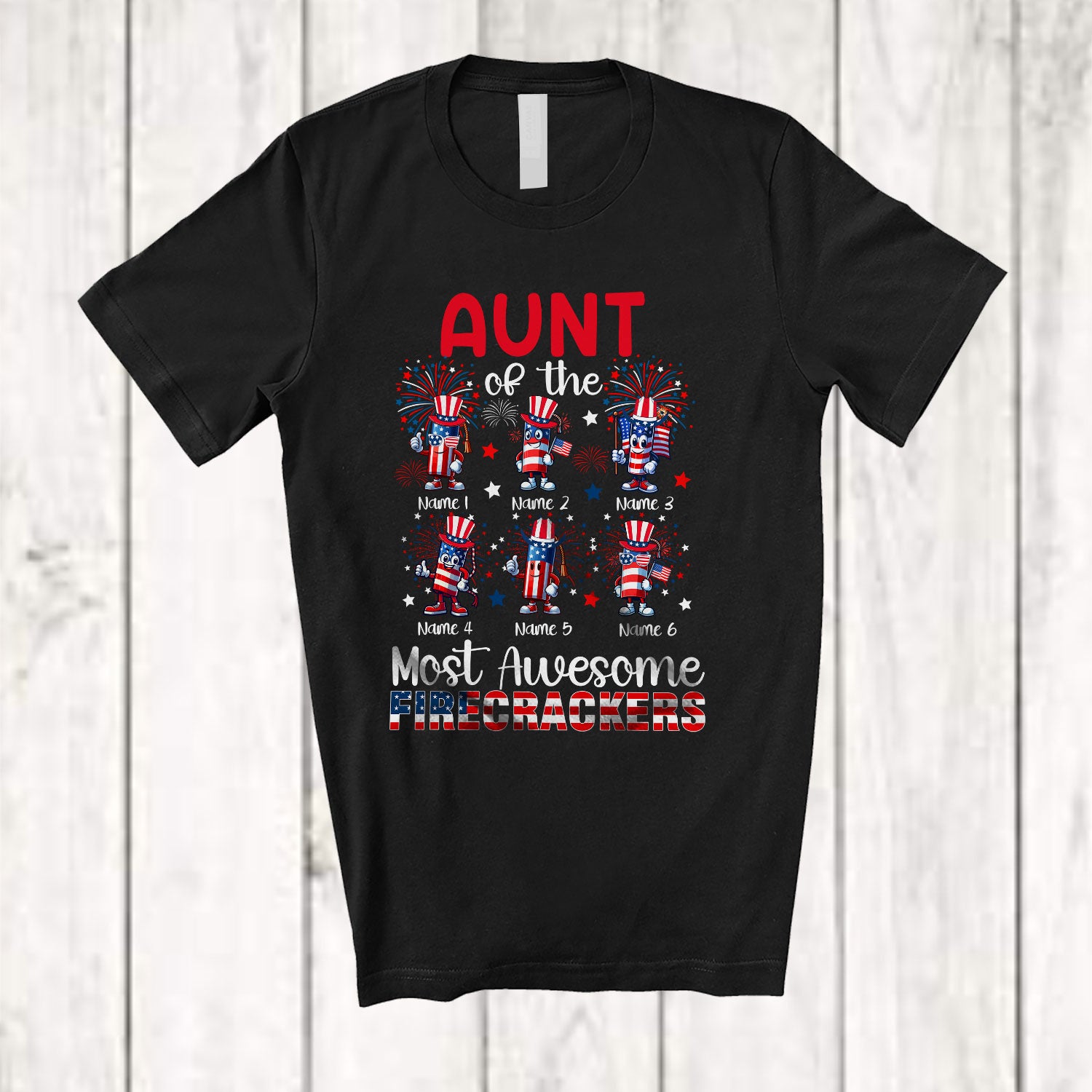 • Personalized Custom Name Aunt Of The Most Awesome Firecrackers; Lovely 4th Of July Fireworks T-Shirt. This cotton t-shirt is a durable staple product with a classic fit. One of the most popular items, it has a relaxed style made for everyday and casual wear.