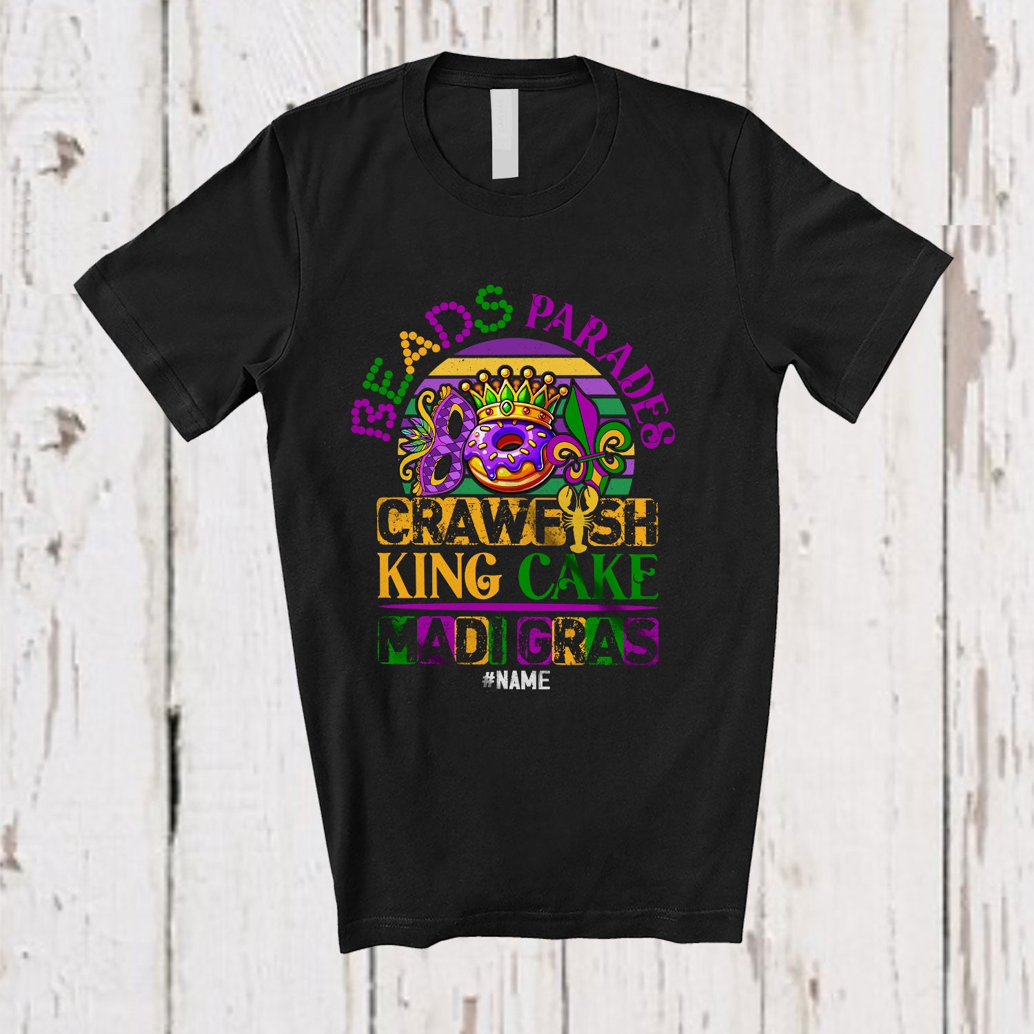 This Personalized Custom Name Beads Parades Crawfish King Cake; Amazing Mardi Gras Symbols Retro T-Shirt is great idea gift for your family, friends in this birthday, christmas, mother's day, father's day, patrick's day or any holiday.