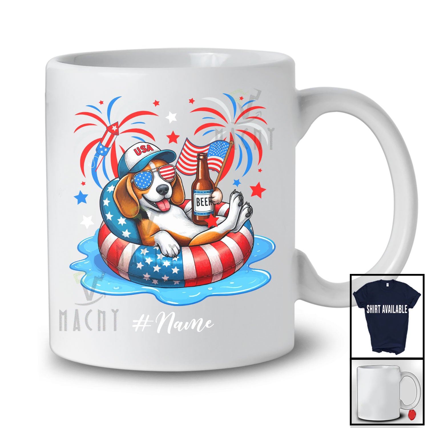 new MacnyStore - Personalized Custom Name Beagle Drinking On Float Beach; Joyful 4th Of July Patriotic T-Shirt – Macnystore
