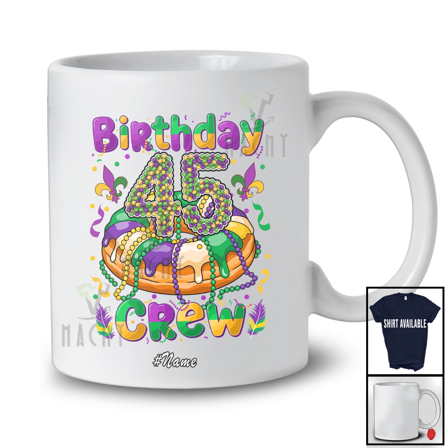 • Personalized Custom Name Birthday 45th Crew; Joyful Birthday Mardi Gras Breads King Cake T-Shirt. This cotton t-shirt is a durable staple product with a classic fit. One of the most popular items, it has a relaxed style made for everyday and casual wear.