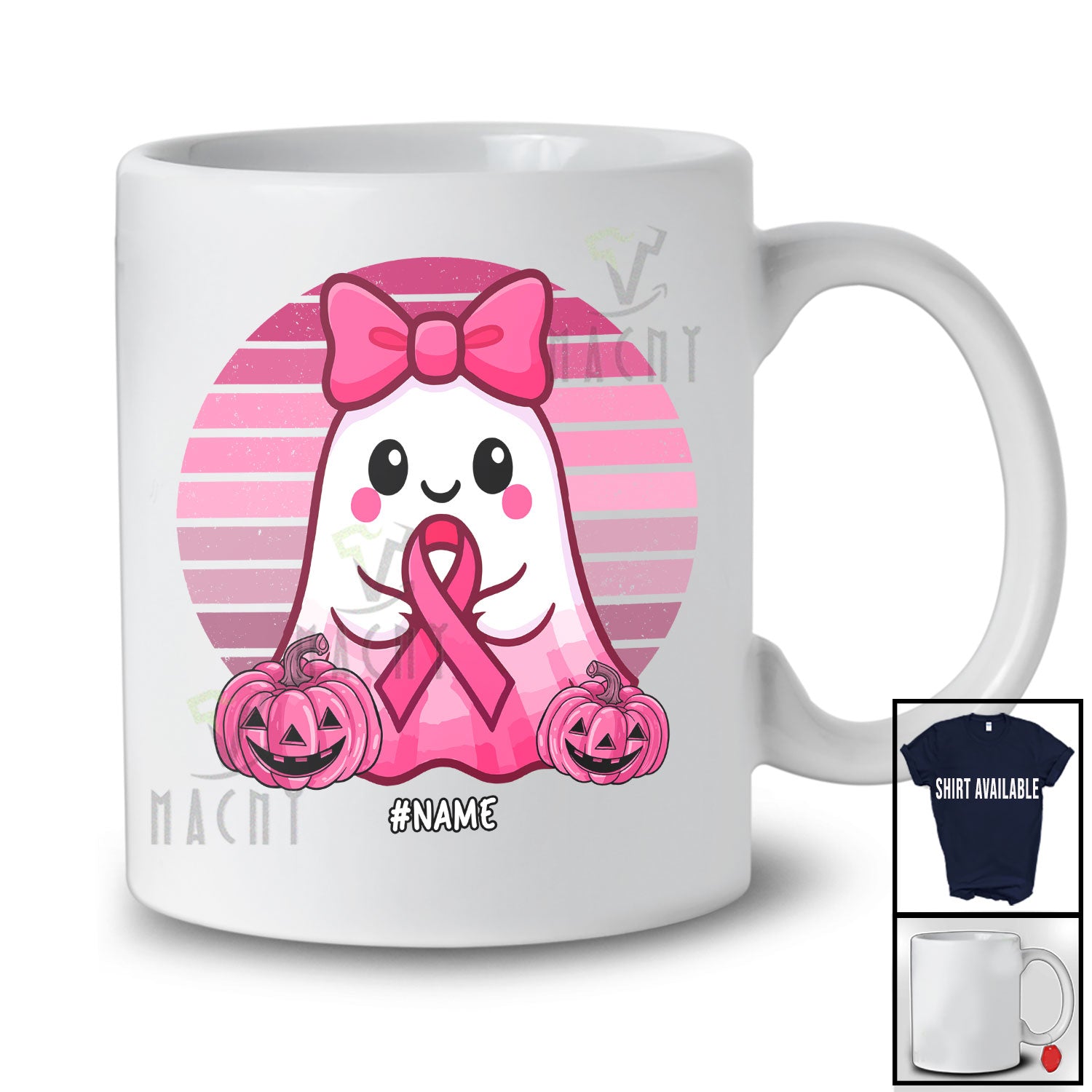 • Personalized Custom Name Boo Ghost Pink Ribbon; Lovely Halloween Breast Cancer Vintage Retro T-Shirt. This cotton t-shirt is a durable staple product with a classic fit. One of the most popular items, it has a relaxed style made for everyday and casual wear.