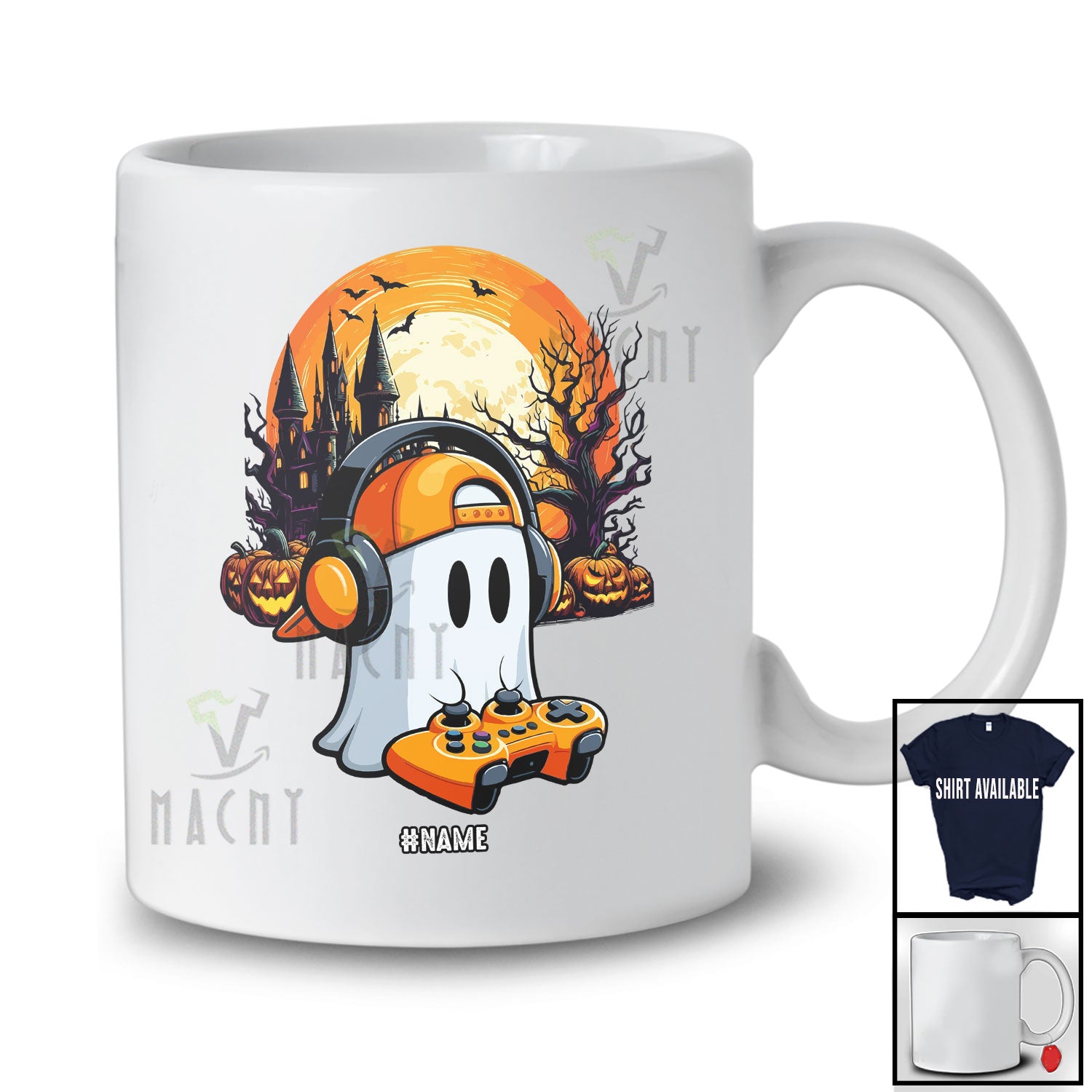 • Personalized Custom Name Boo Ghost Video Gaming; Awesome Halloween Moon Gamer T-Shirt. This cotton t-shirt is a durable staple product with a classic fit. One of the most popular items, it has a relaxed style made for everyday and casual wear.