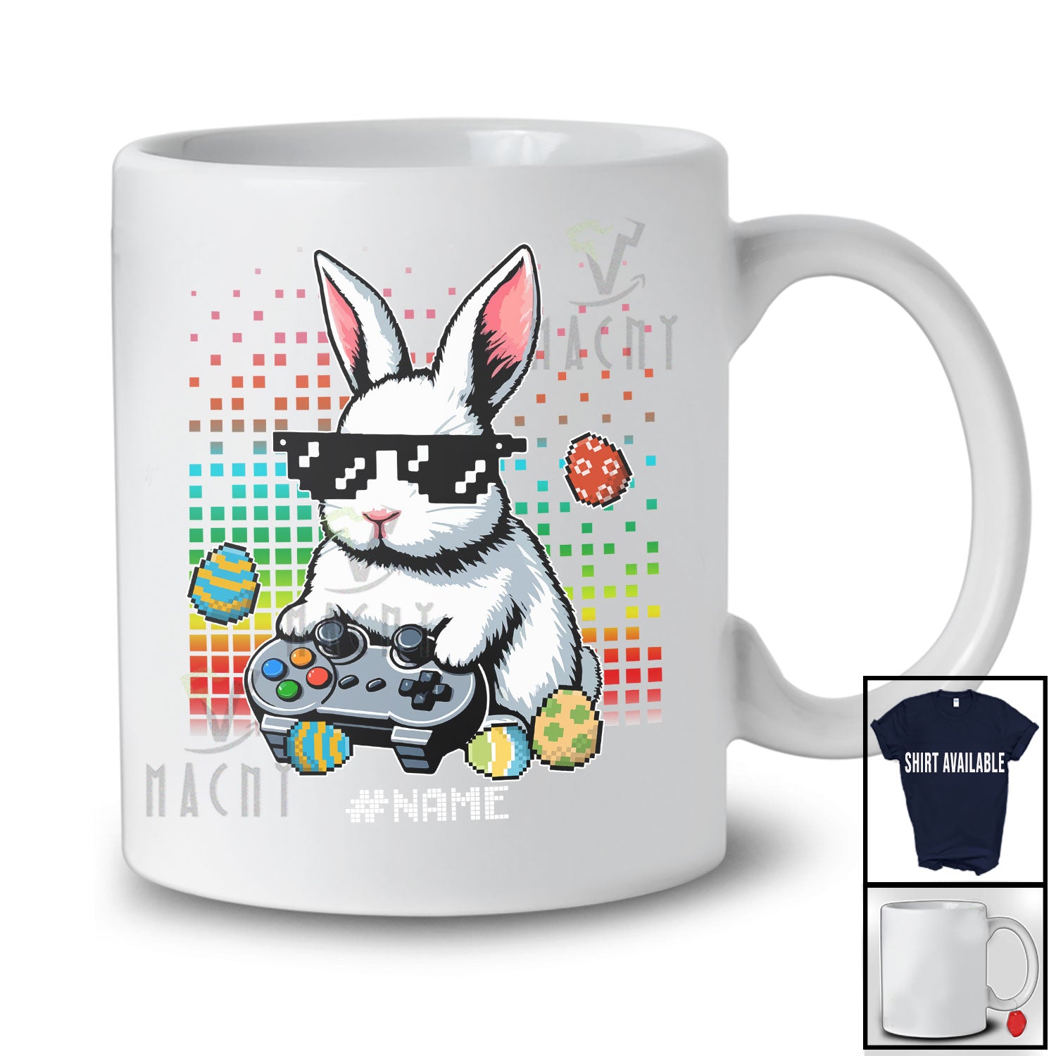 Personalized Custom Name Bunny Playing Video Game; Lovely Easter Egg Gaming Gamer T-Shirt. This cotton t-shirt is a durable staple product with a classic fit. One of the most popular items, it has a relaxed style made for everyday and casual wear.