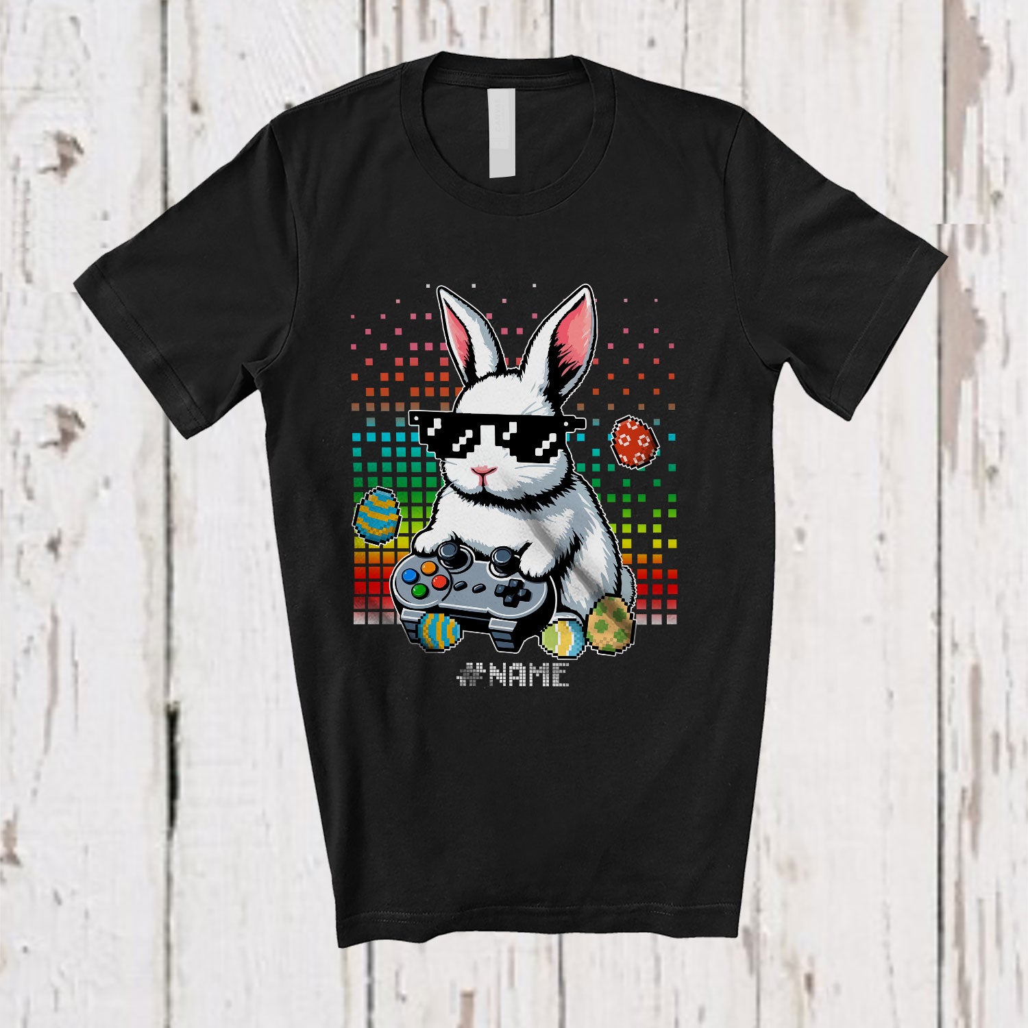 Personalized Custom Name Bunny Playing Video Game; Lovely Easter Egg Gaming Gamer T-Shirt