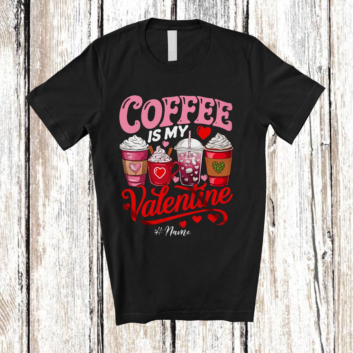 Personalized Custom Name Coffee Is My Valentine; Lovely Coffee Lover; Hearts Single Family T-Shirt. This cotton t-shirt is a durable staple product with a classic fit. One of the most popular items, it has a relaxed style made for everyday and casual wear.