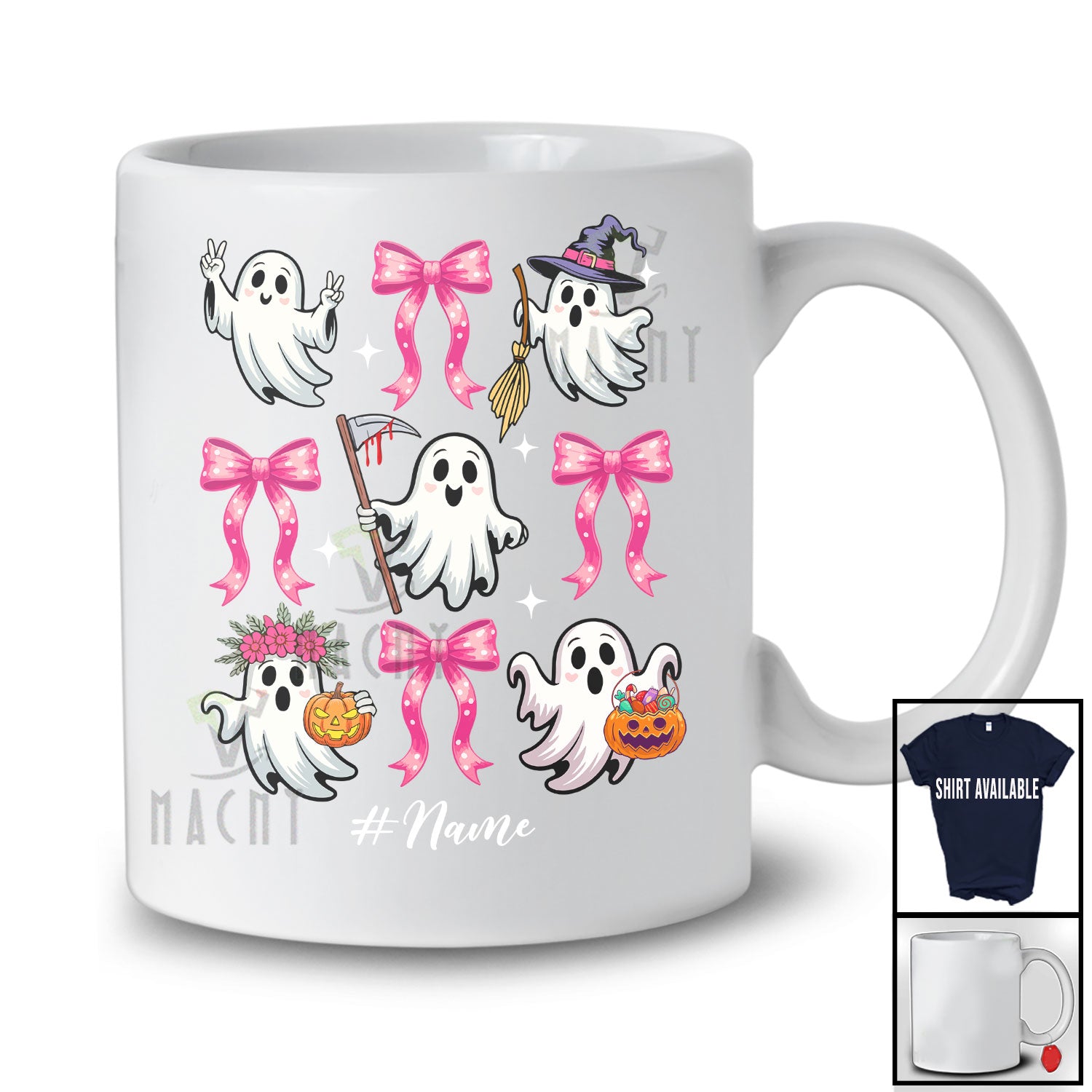 • Personalized Custom Name Coquette Ghost Boo Collection; Humorous Halloween Costume Family T-Shirt. This cotton t-shirt is a durable staple product with a classic fit. One of the most popular items, it has a relaxed style made for everyday and casual wear.