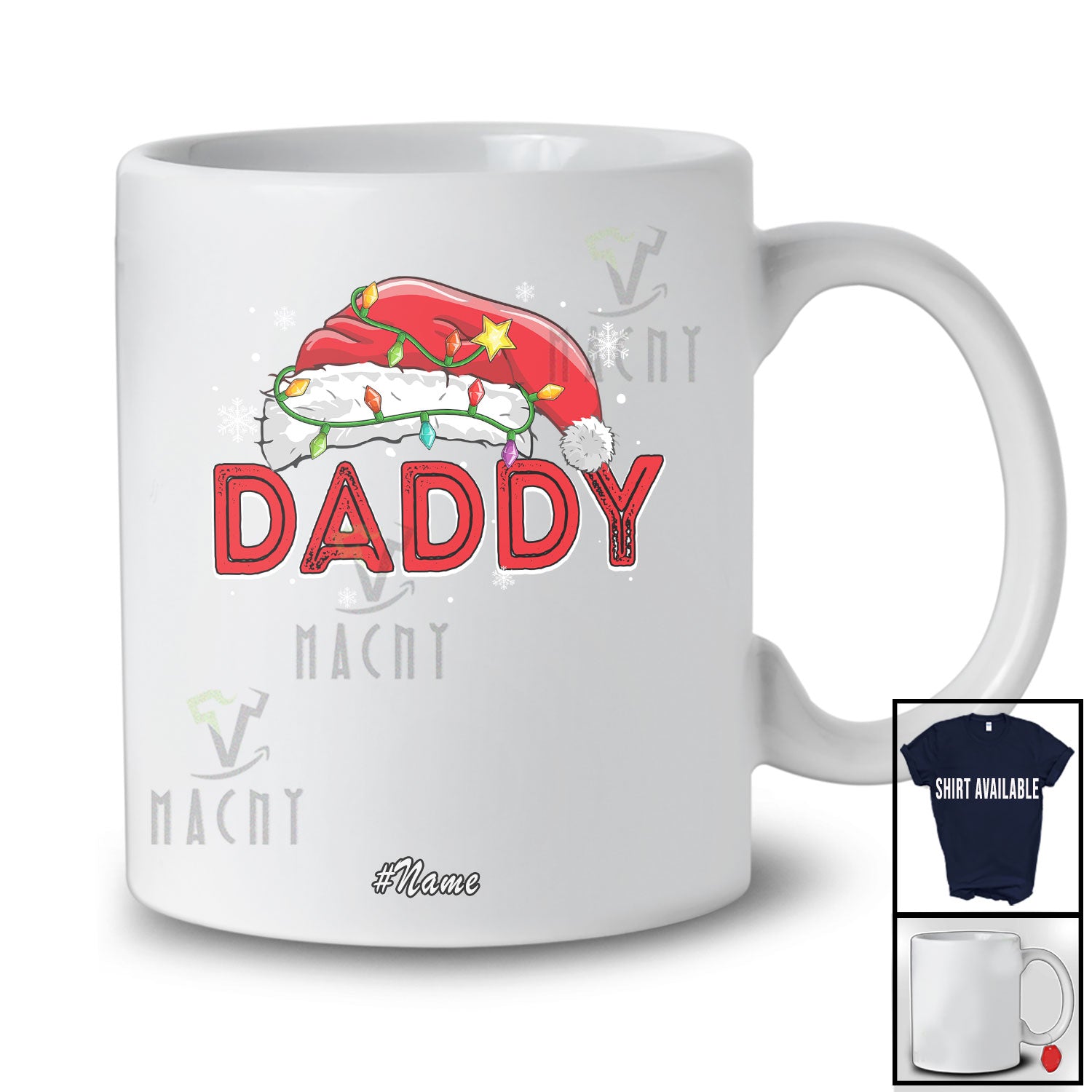 Personalized Custom Name Daddy; Wonderful Christmas Lights Santa; X-mas Pajama Family T-Shirt. This cotton t-shirt is a durable staple product with a classic fit. One of the most popular items, it has a relaxed style made for everyday and casual wear.