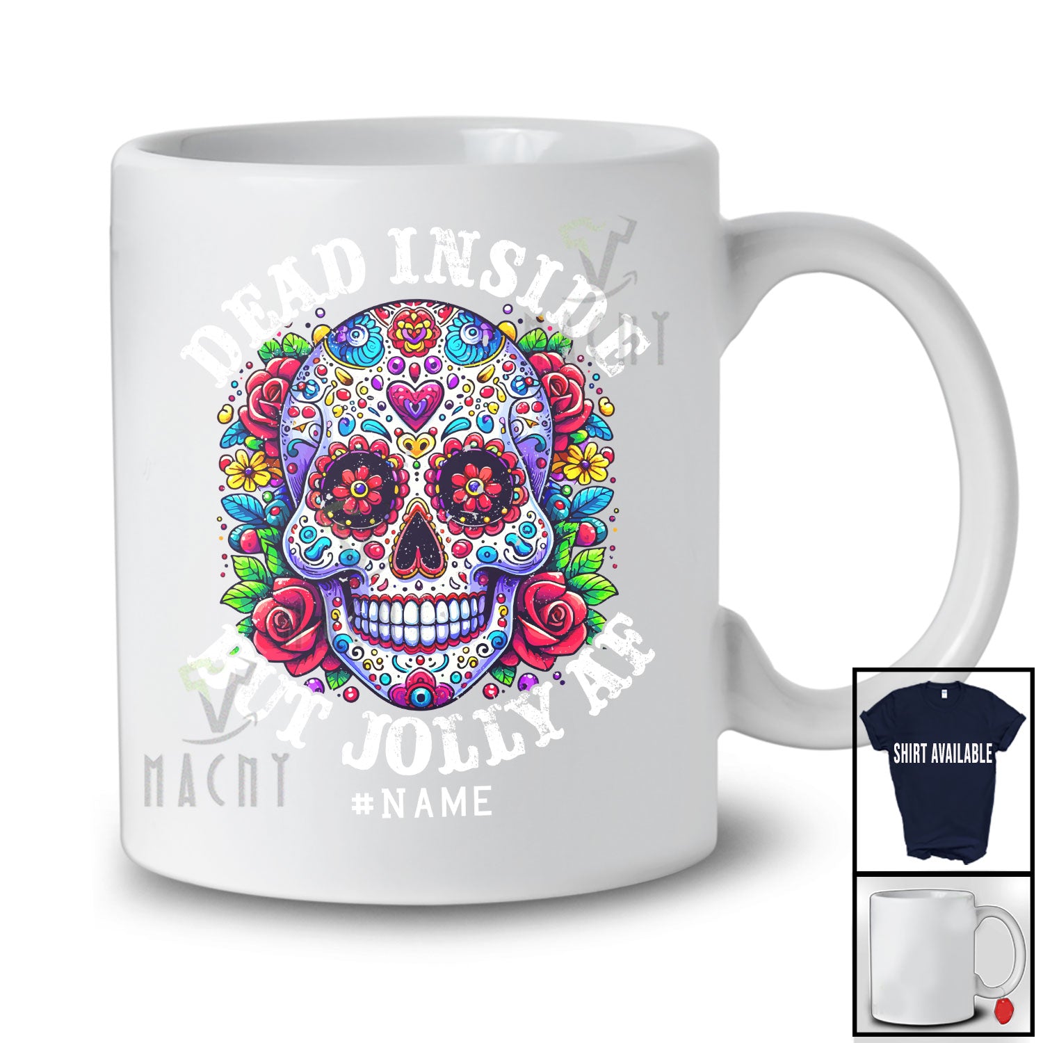 This Personalized Custom Name Dead Inside But Jolly AF; Colorful Sugar Skull Flowers; Mexican Family T-Shirt is great idea gift for your family, friends in this birthday, christmas, mother's day, father's day, patrick's day or any holiday.