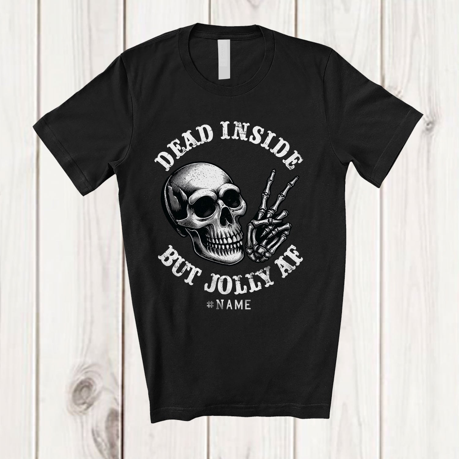 new MacnyStore - Personalized Custom Name Dead Inside But Jolly AF; Humorous Skull Skeleton Hand; Family T-Shirt – Macnystore