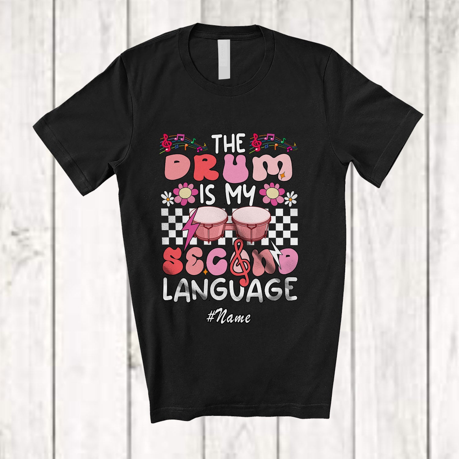 Personalized Custom Name Drum Is My Second Language; Amusing Player Musical Instruments T-Shirt