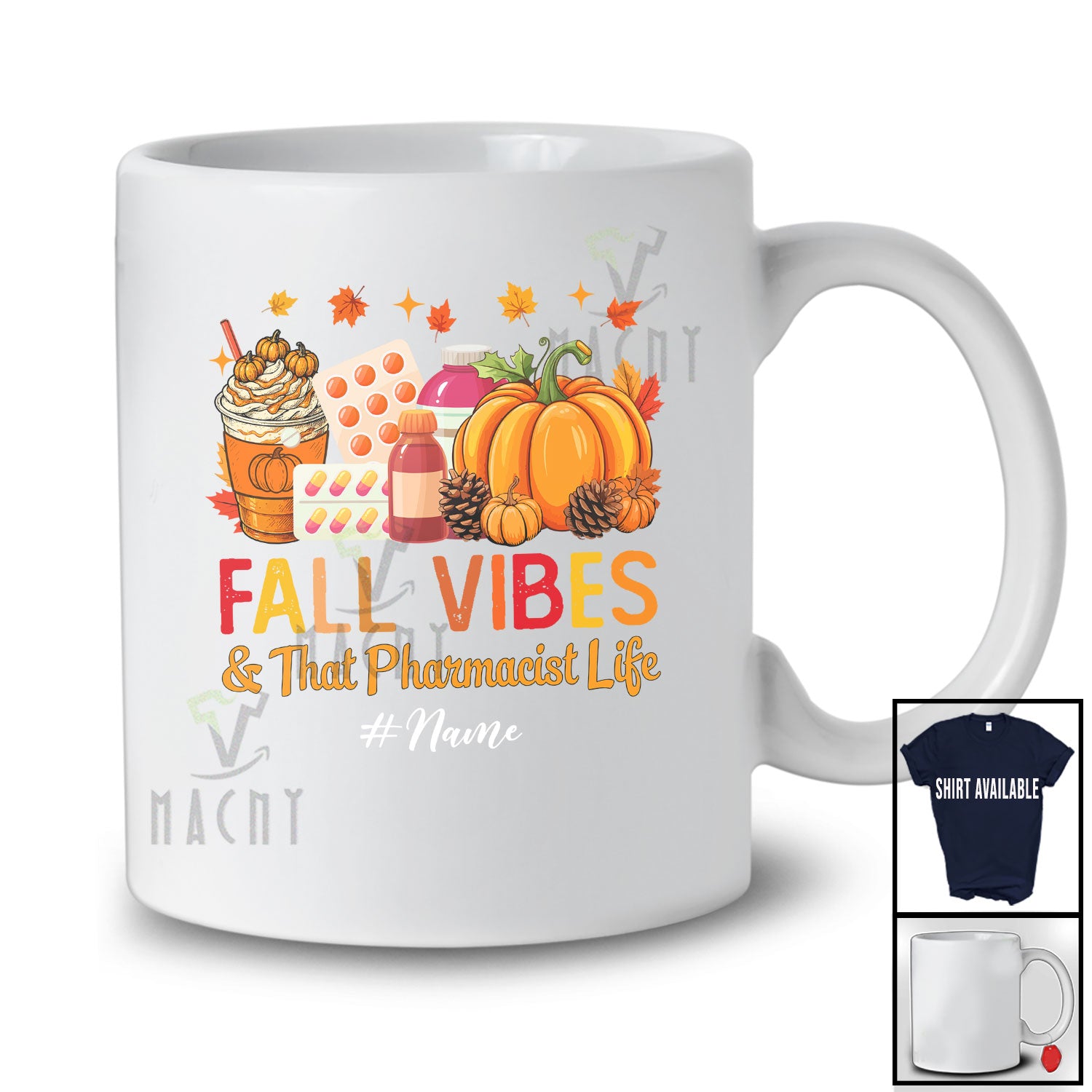 • Personalized Custom Name Fall Vibes & That Pharmacist; Proud Thanksgiving Autumn Jobs T-Shirt. This cotton t-shirt is a durable staple product with a classic fit. One of the most popular items, it has a relaxed style made for everyday and casual wear.
