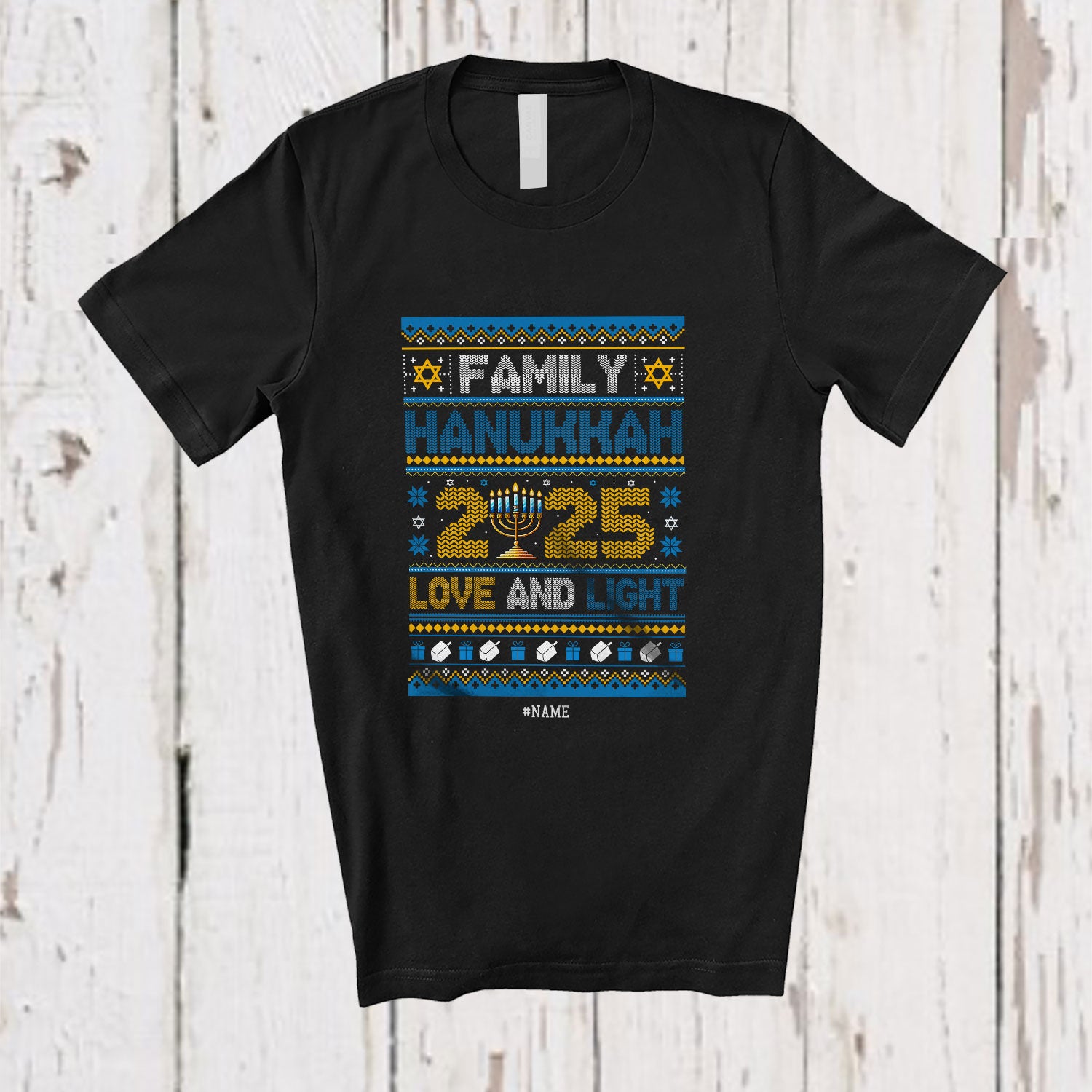 Personalized Custom Name Family Hanukkah 2025; Joyful Chanukah Lights Sweater Friend Family Group T-Shirt. This cotton t-shirt is a durable staple product with a classic fit. One of the most popular items, it has a relaxed style made for everyday and casual wear.
