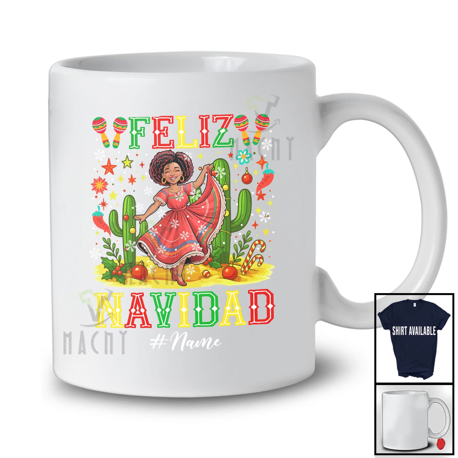 new MacnyStore - Personalized Custom Name Feliz Navidad; Joyful Christmas Dancing Afro Women Spanish Mexican T-Shirt – Macnystore