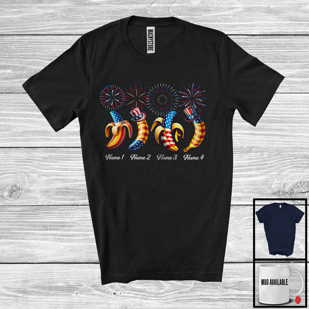Personalized Custom Name Four Banana, Lovely 4th Of July Fireworks, Vegan Patriotic Group T-Shirt