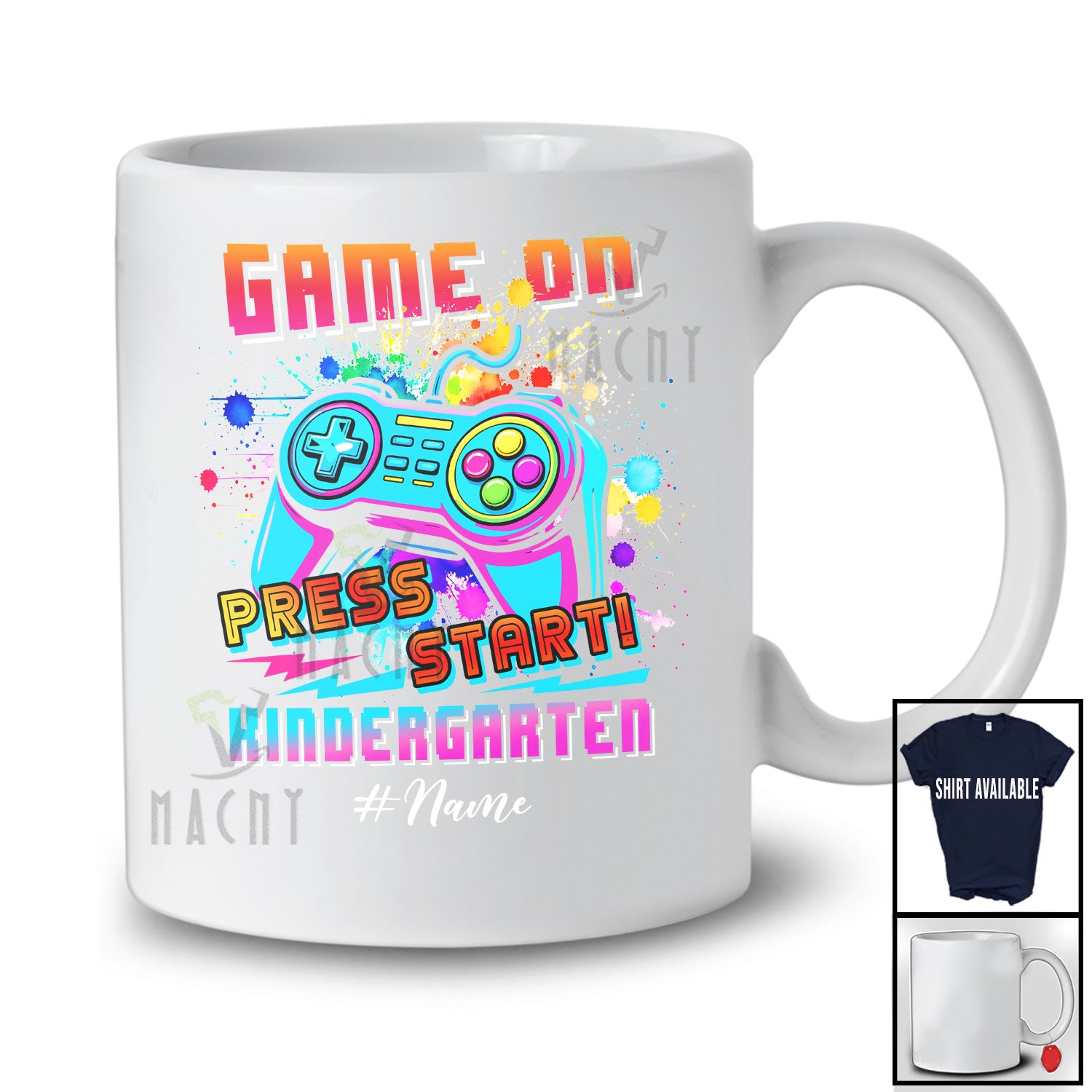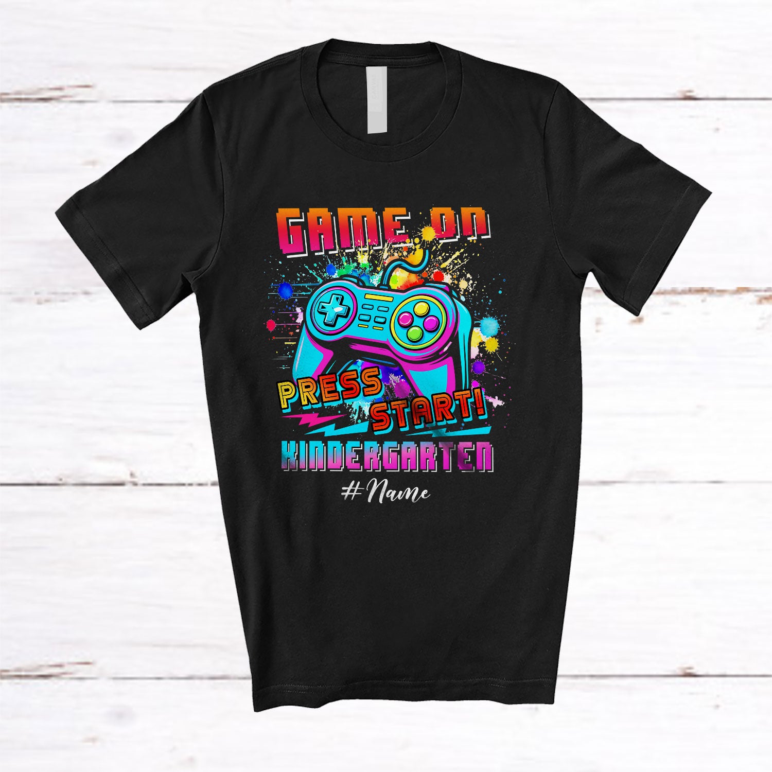 Personalized Custom Name Game On Press Start Kindergarten; Joyful First Day Of School Boys Gamer T-Shirt