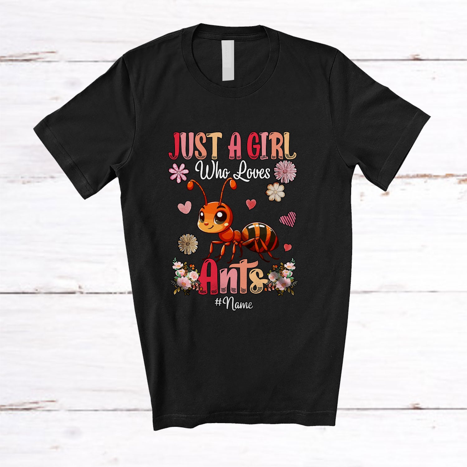 Personalized Custom Name Girl Who Loves Ants; Floral Summer Flowers Ants Animal Lover T-Shirt