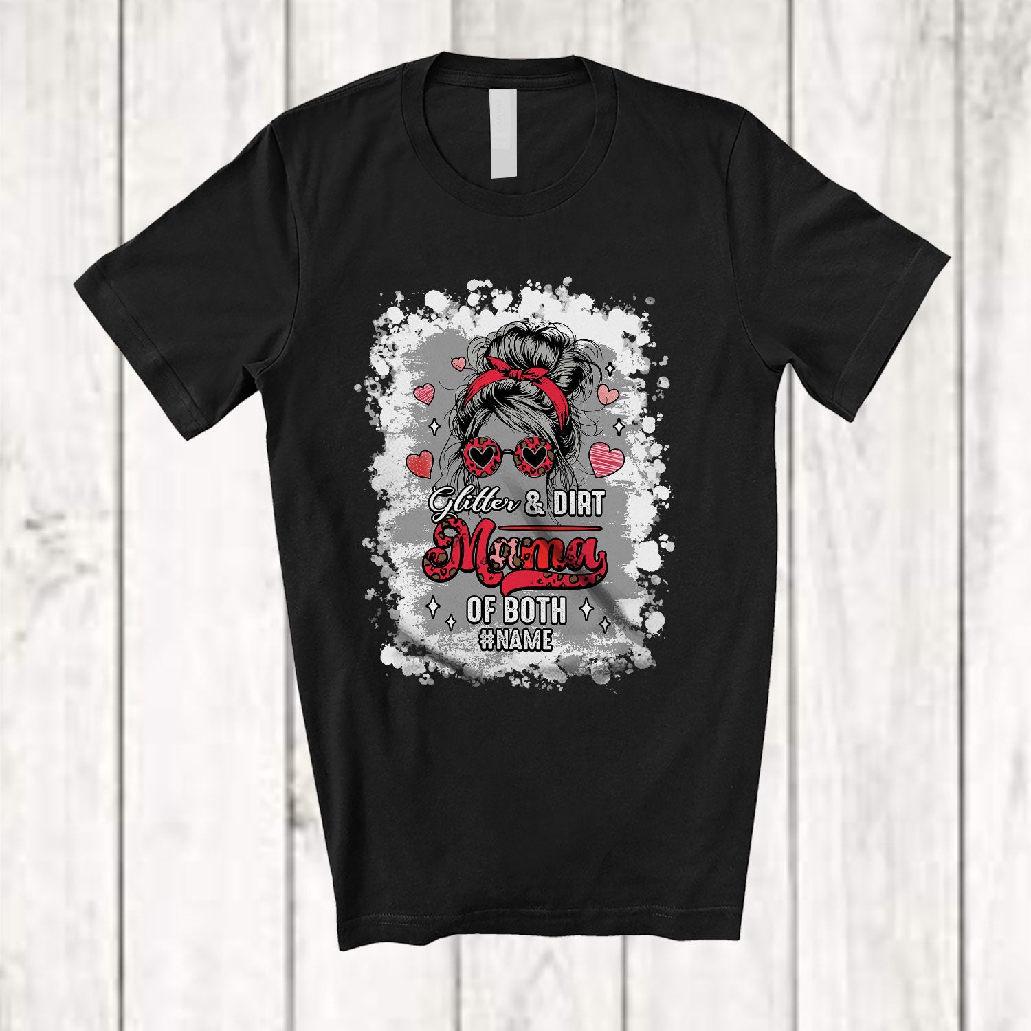 Every product is unique, just like you. If you're looking for a product that fits the mold of your life, the Personalized Custom Name Glitter And Dirt Mama; Proud Mother's Day Leopard Messy Bun Hair T-Shirt is for you.