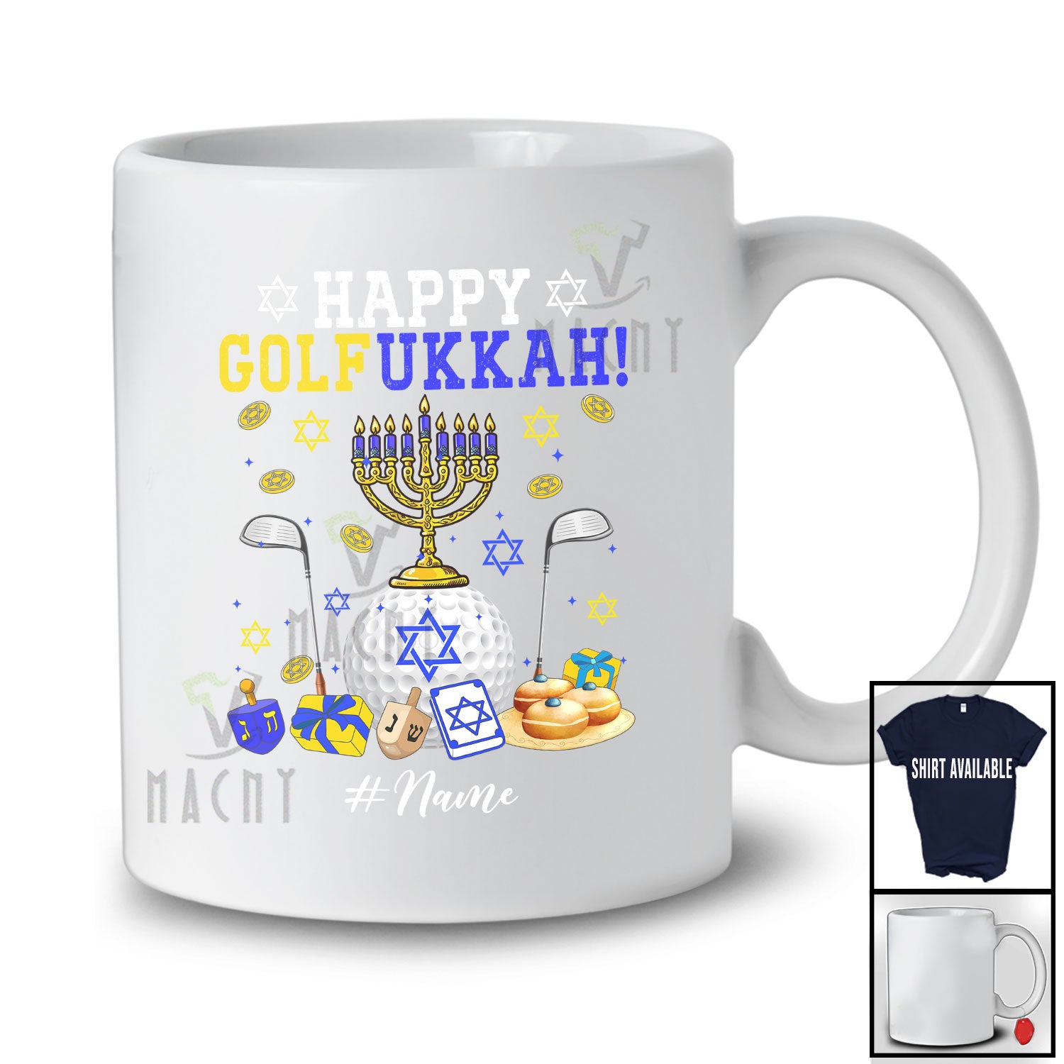 Personalized Custom Name Happy Golfukkah; Joyful Hanukkah Lights Golf Ball Player T-Shirt. This cotton t-shirt is a durable staple product with a classic fit. One of the most popular items, it has a relaxed style made for everyday and casual wear.