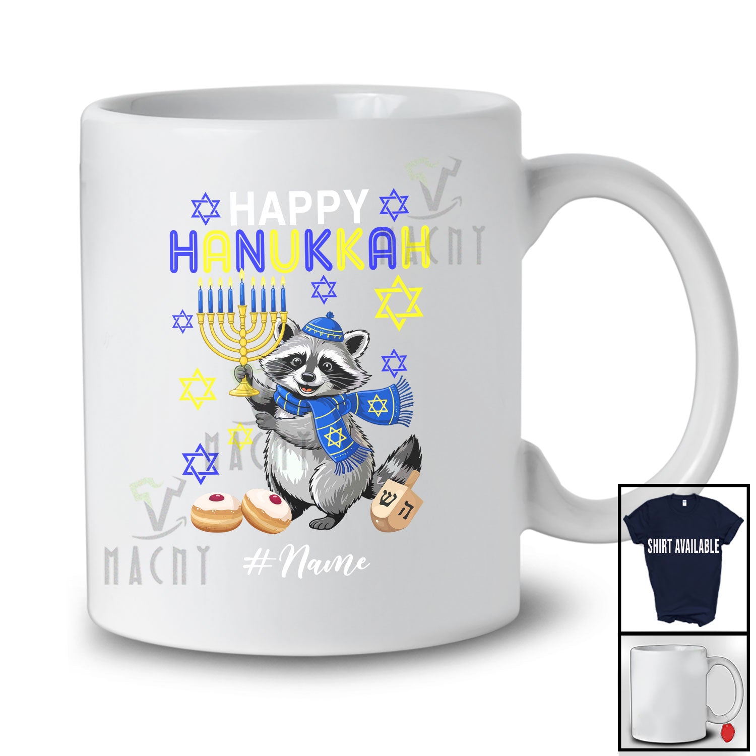 This Personalized Custom Name Happy Hanukkah; Adorable Chanukah Lights Raccoon Animal; Family T-Shirt is great idea gift for your family, friends in this birthday, christmas, mother's day, father's day, patrick's day or any holiday.