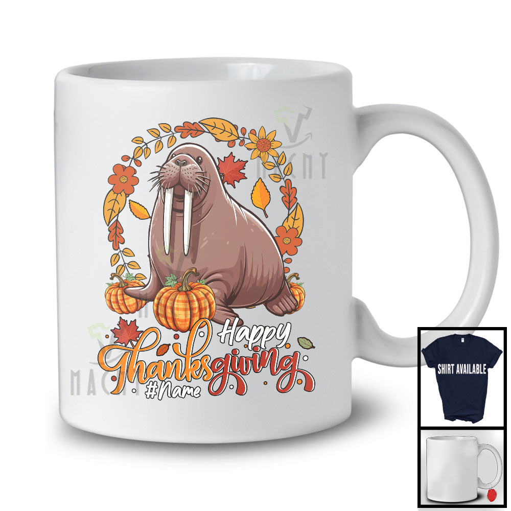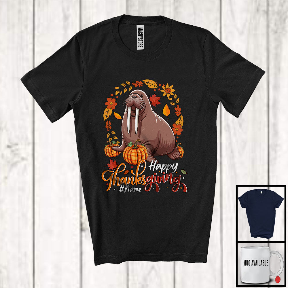 new MacnyStore - Personalized Custom Name Happy Thanksgiving; Lovely Walrus Pumpkin Fall Leaves; Sea Animal T-Shirt – Macnystore