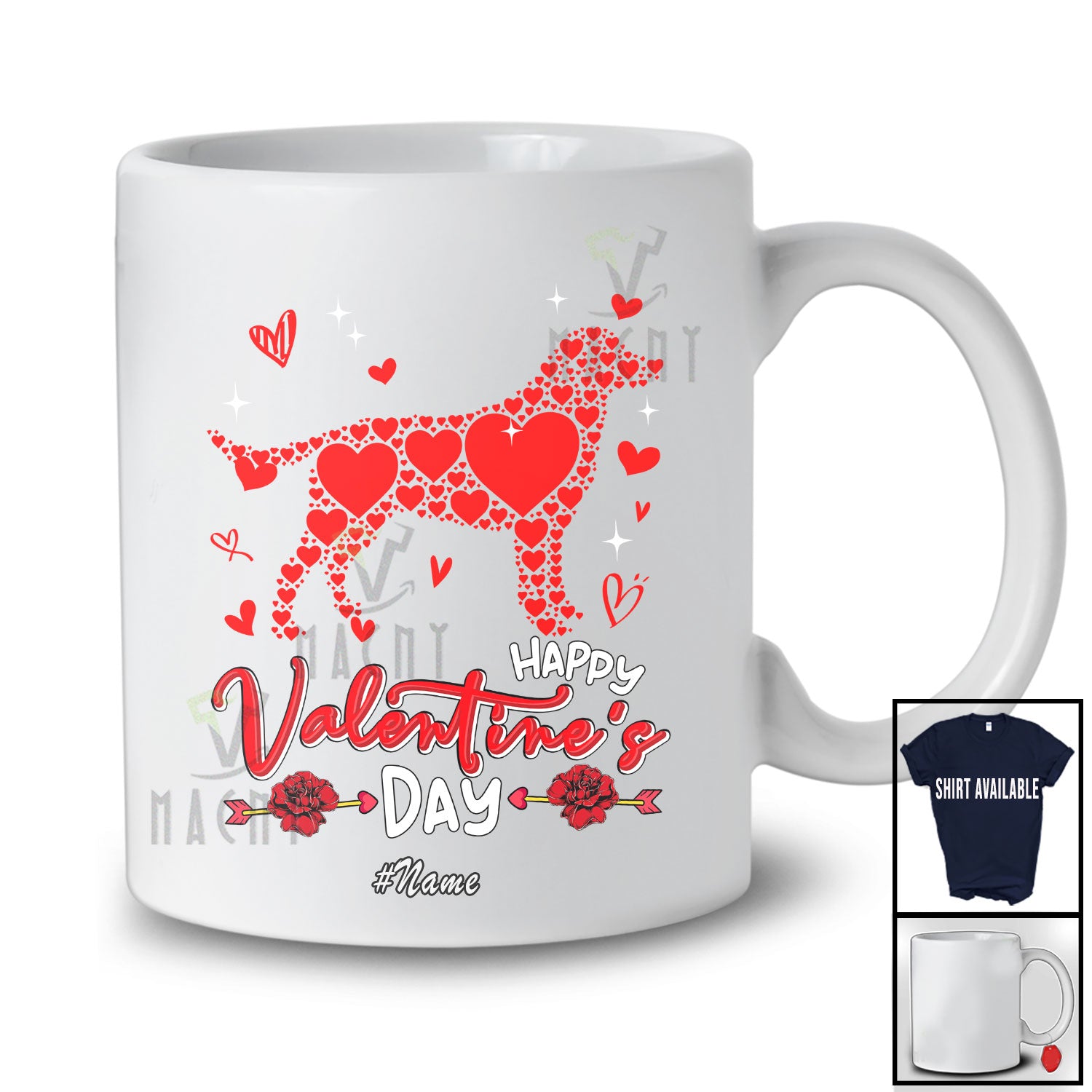 • Personalized Custom Name Happy Valentine's Day; Lovely Hearts Greater Swiss Mountain Shape T-Shirt. This cotton t-shirt is a durable staple product with a classic fit. One of the most popular items, it has a relaxed style made for everyday and casual wear.