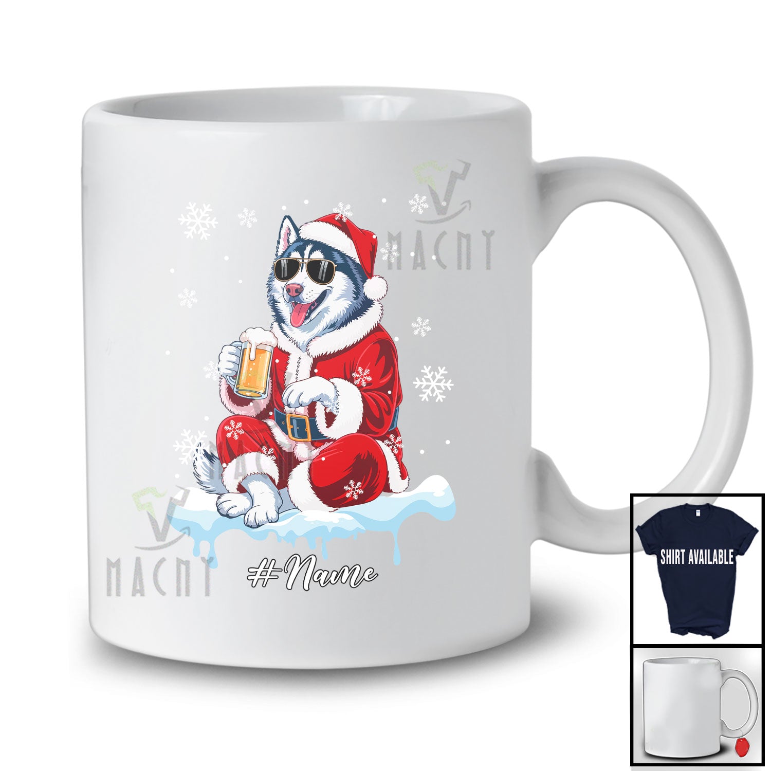 Personalized Custom Name Husky Santa Drinking Beer; Joyful Christmas Drunker Family T-Shirt
